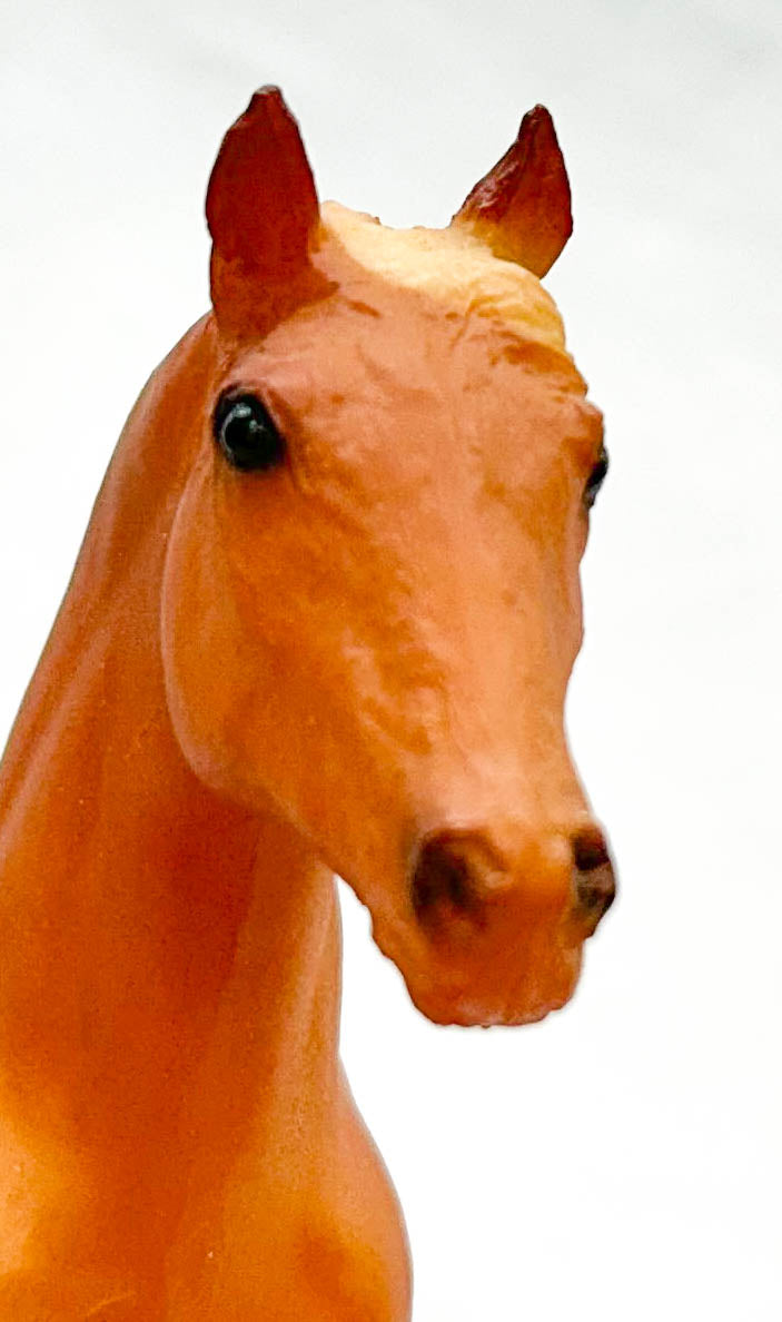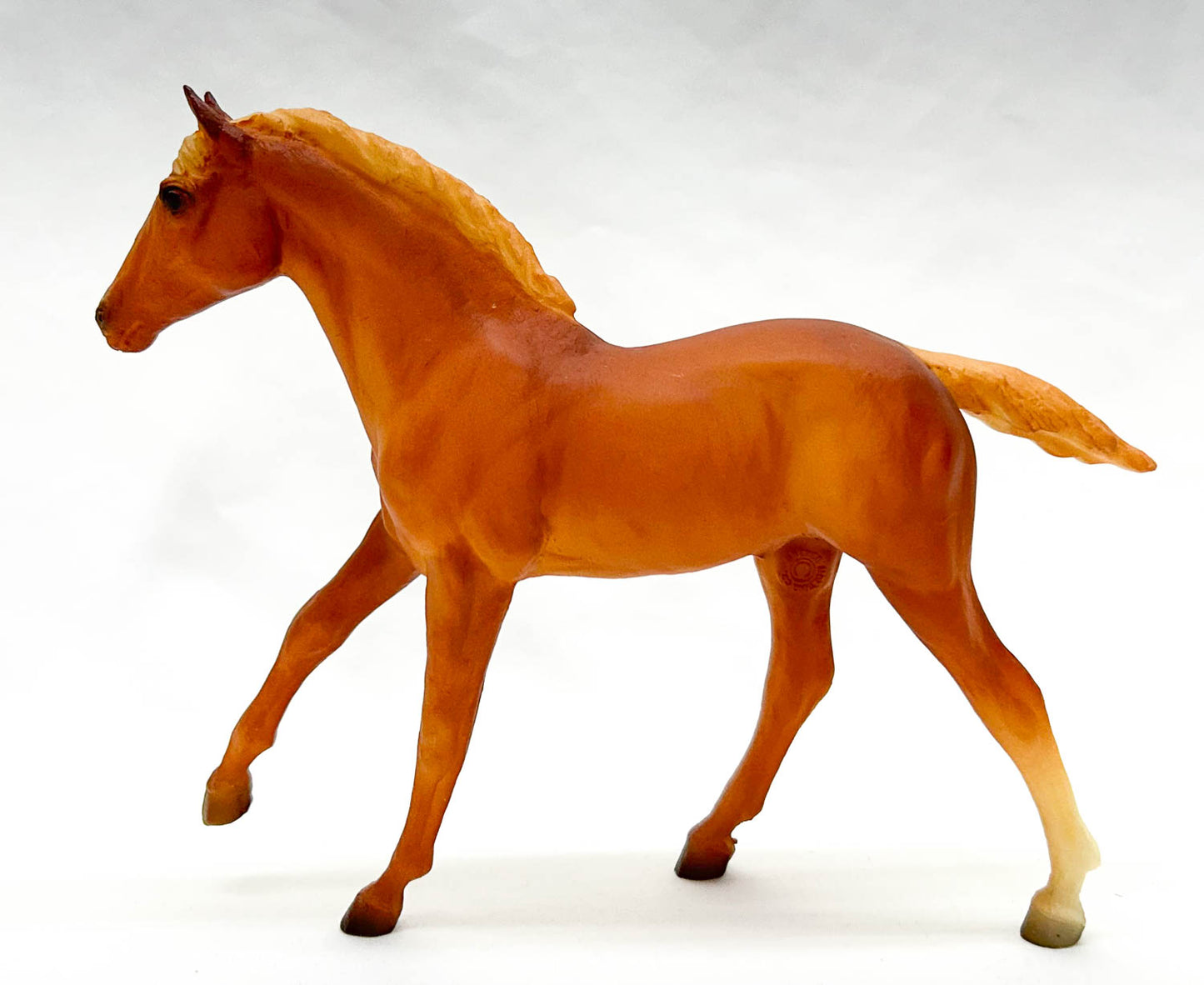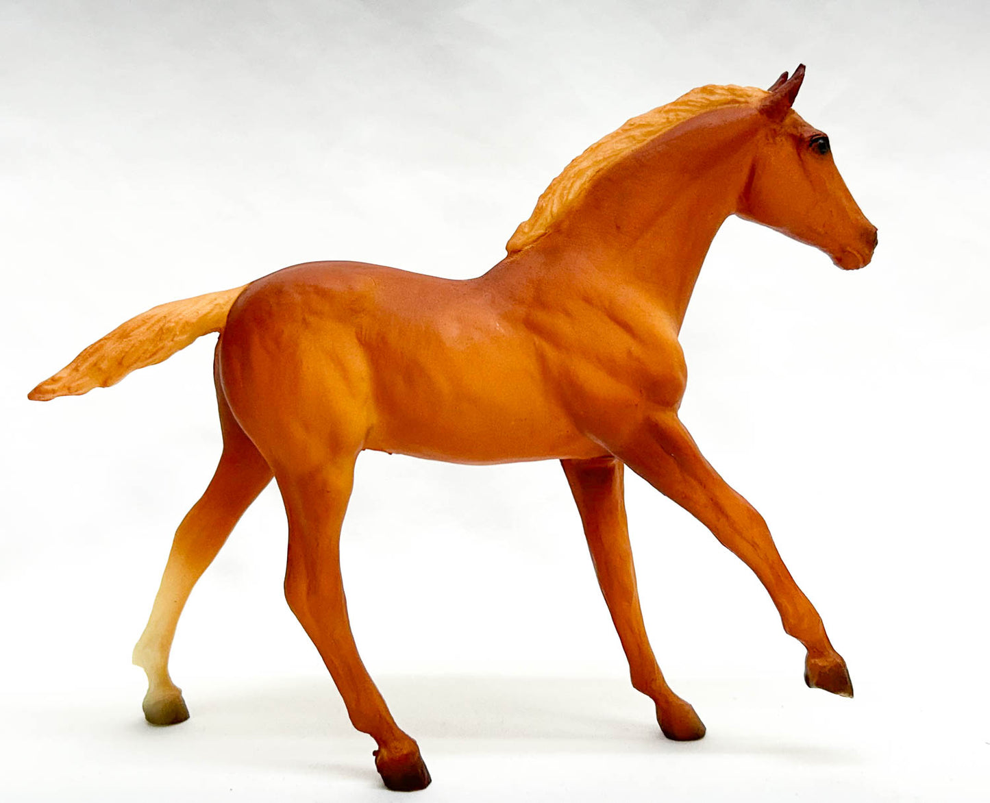 The Action Stock Horse Foal was produced in this color from 1984 - 1986. He features a rich chestnut body with lighter mane and tail and one rear sock.