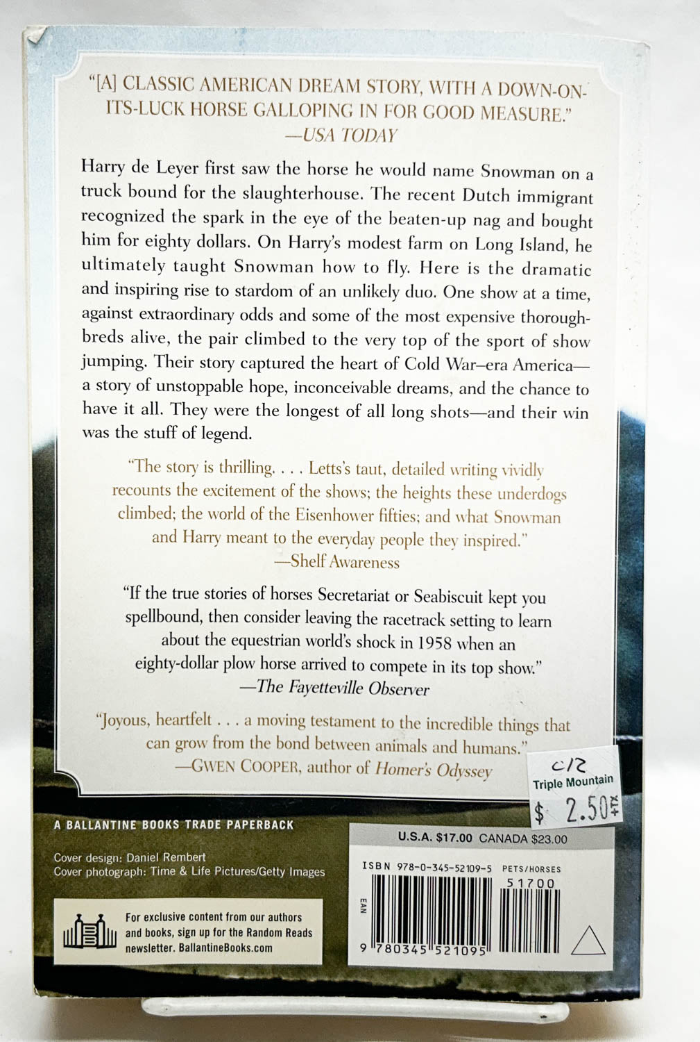 The true story of Snowman, the horse that inspired a nation, is a heartwarming classic of equine literature.  When a young immigrant equestrian takes a chance on a horse off the butcher's truck, he is rewarded with a lifelong friend, and together they take the jumping world by storm.  The book by Elizabeth Letts is engagingly written, full of emotion and hope, and is impossible to put down.