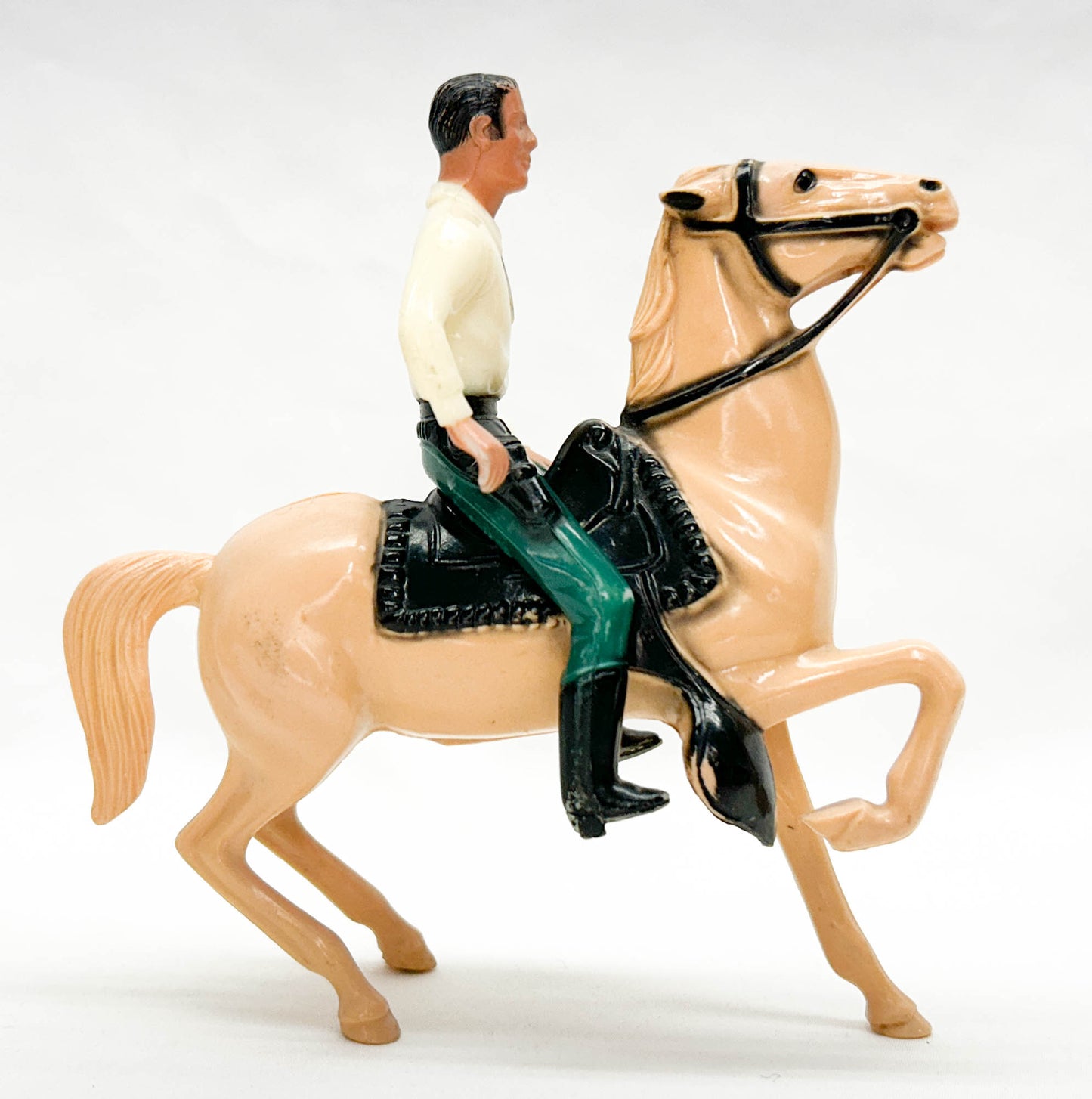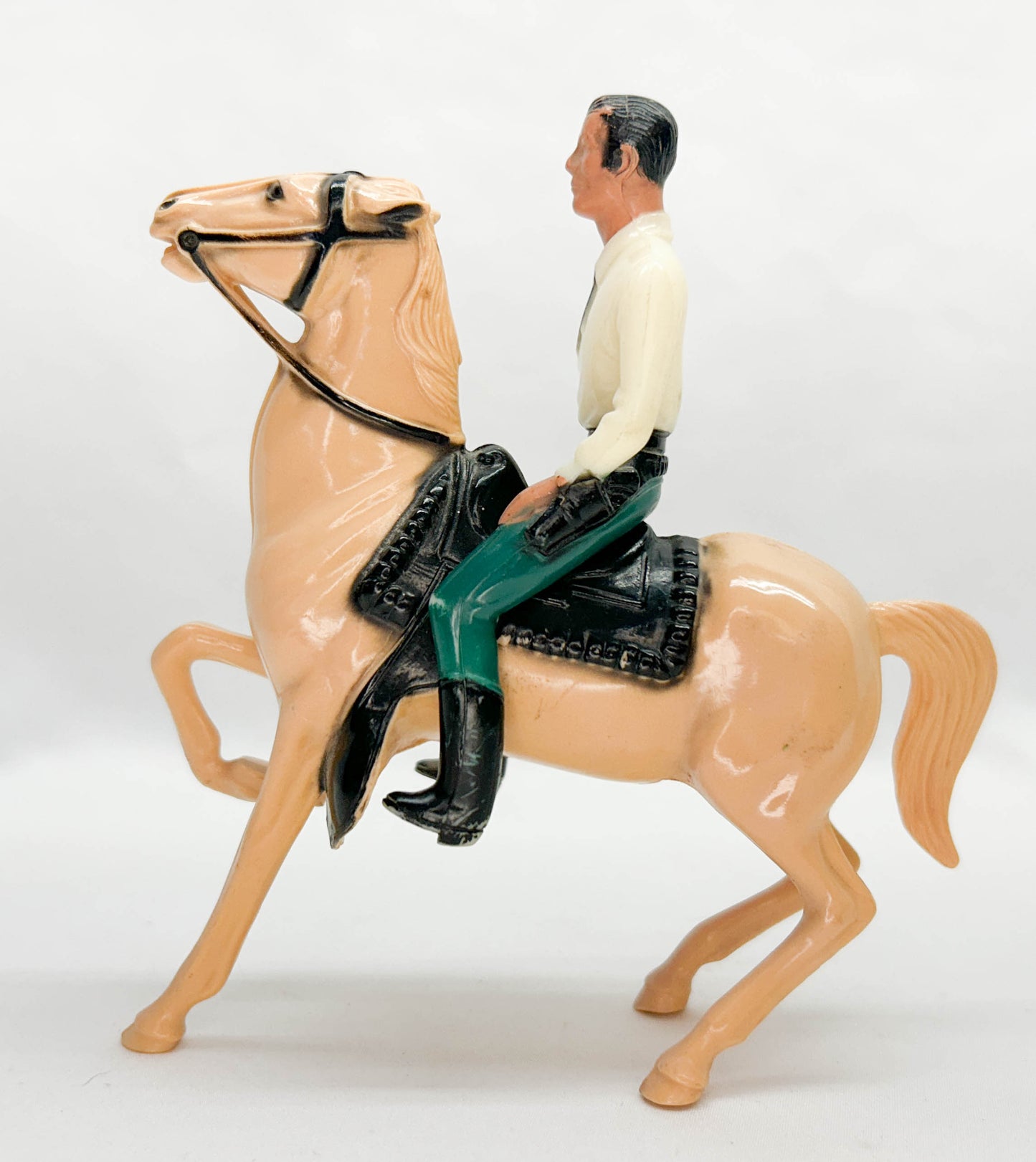 Rifleman and cream-colored mount: Very Good to Excellent condition with paint loss on the rider's head being the worst. There are a few other rubs, and a little scuff on the horse's right hindquarter, and the horse's seams are slightly misaligned on the front, not unusual for that period.