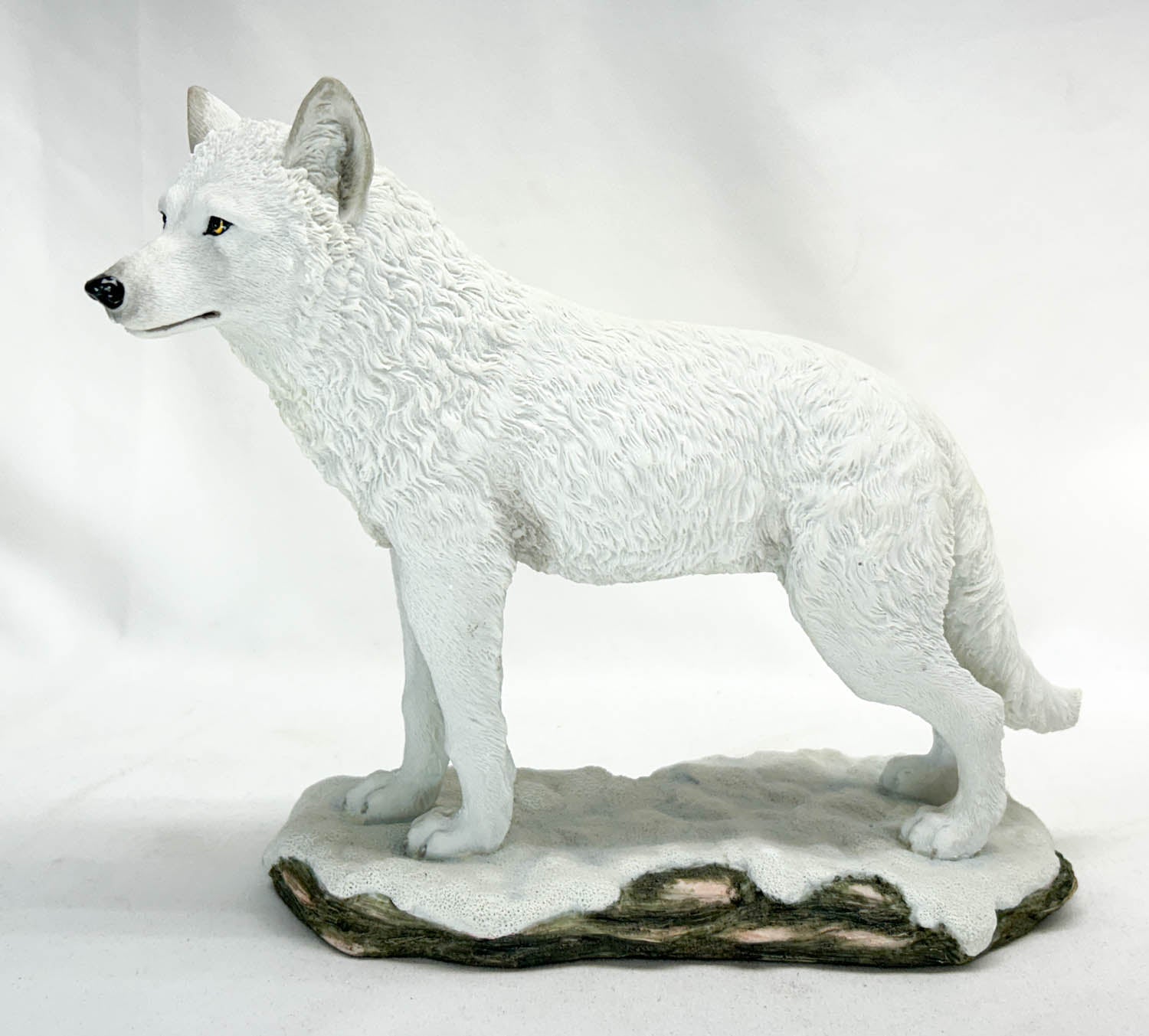This beautiful white wolf stands at calm attention, watching over her pack. She stands upon her snow-covered base and features lovely painting details. She was produced by Veronese Design, and is now retired, but we managed to get the last couple of pieces available! She pairs well with pups from the Mysticalls line to make your own delightful frolicking pack.