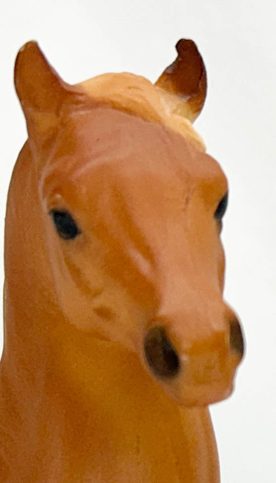 He is in Excellent condition with a light scattering of pinpoint rubs and some marks that should come off with a good cleaning. He's a super-matter fellow, so care should be taken to be gentle while cleaning him. He is a lovely, light, golden chestnut variation with a speckly coat, pretty highlights, and unglossed eyes.