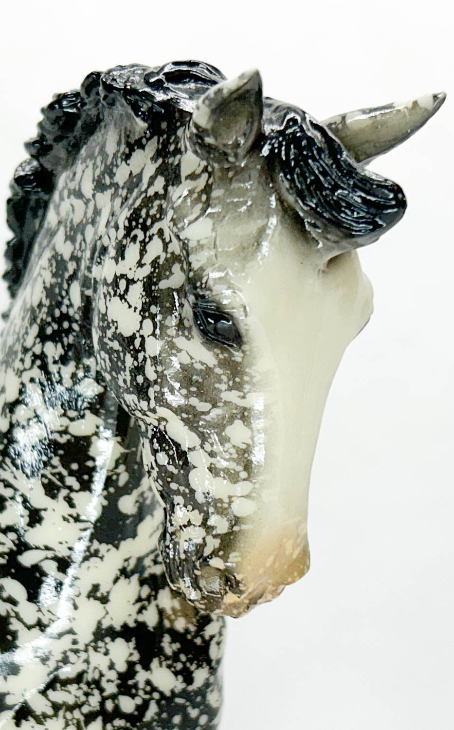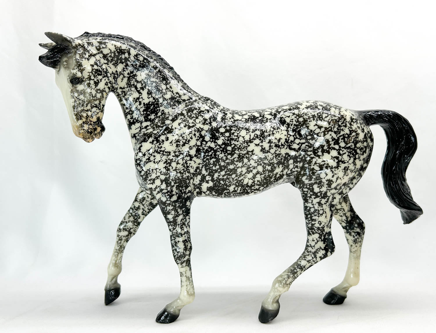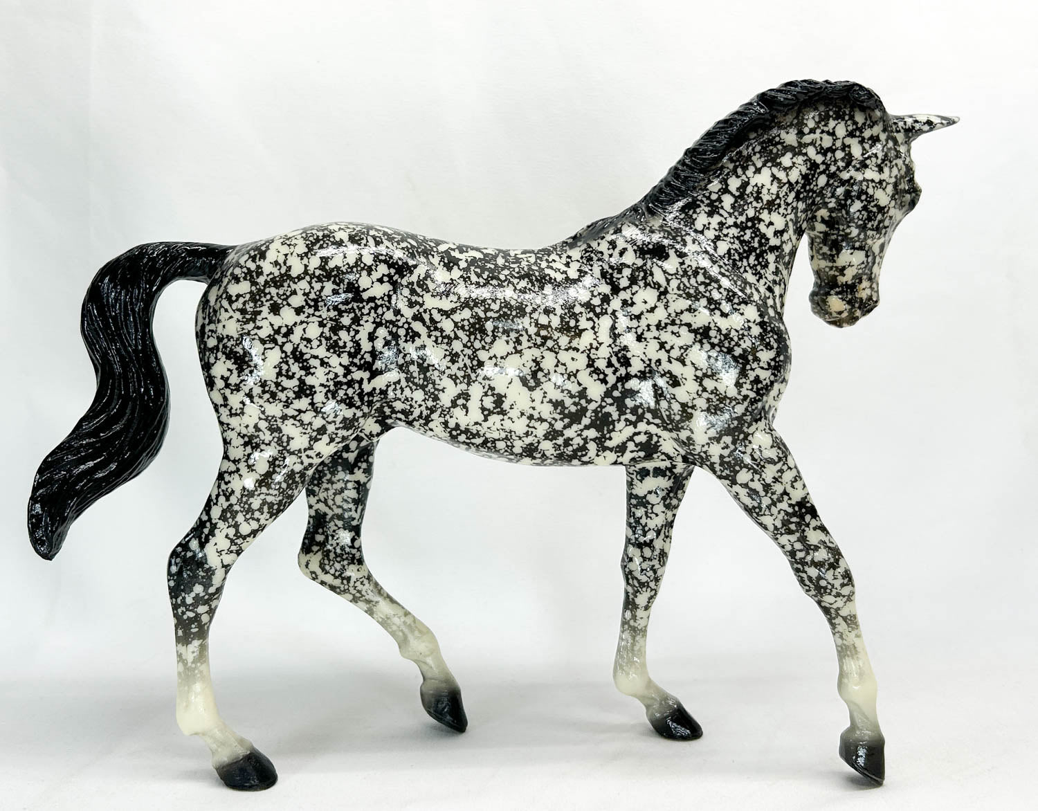 Sgt Pepper was a Special Run at Breyerfest 2003. He is a lovely decorator glossy dappled black on the big Ben mold, wearing four socks and a blaze. Only 1500 were made.