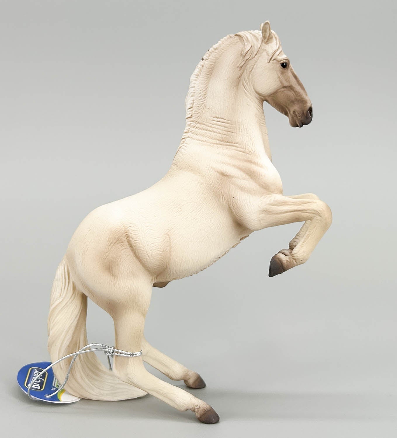 This elegant Lipizzaner Stallion holds his pose in the Levade for everyone to appreciate. The power, balance, and grace of a trained Lipizzaner stallion is something to behold. Far from being flat white, this fellow features shading that shows him to be a young stallion, not fully greyed out yet. He joined the CollectA line in 2012. He was retired in the US by Breyer in 2020 but reinstated in 2023.