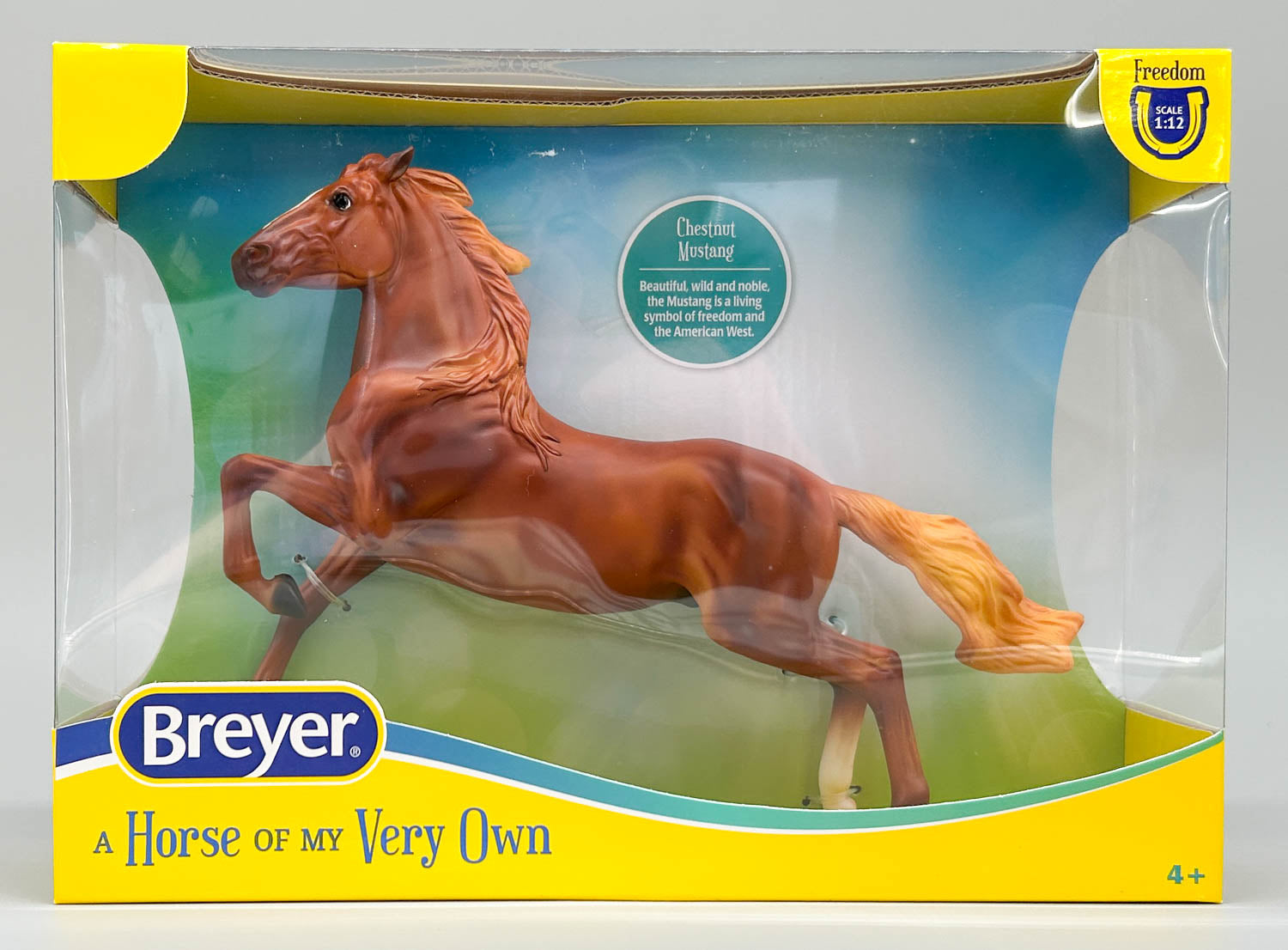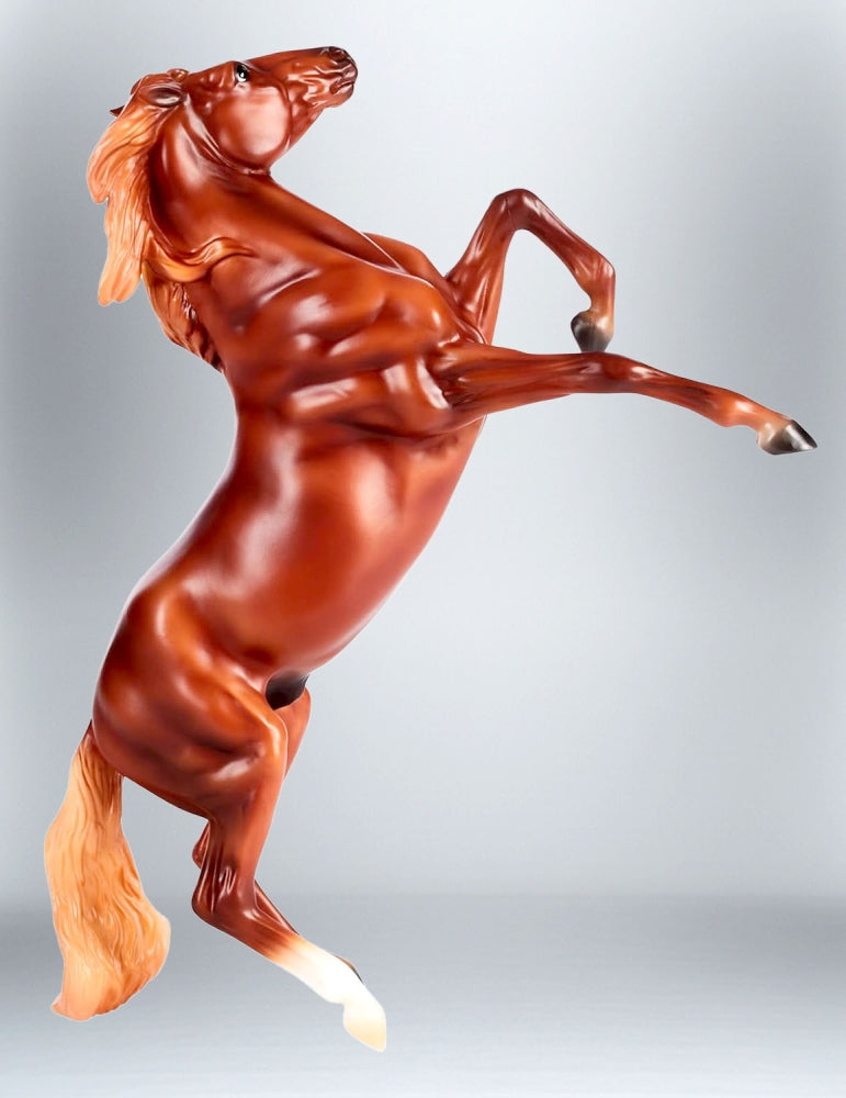 This gorgeous chestnut Mustang sports one hind sock and a flaxen mane and tail. He joined the Breyer line in 2026.