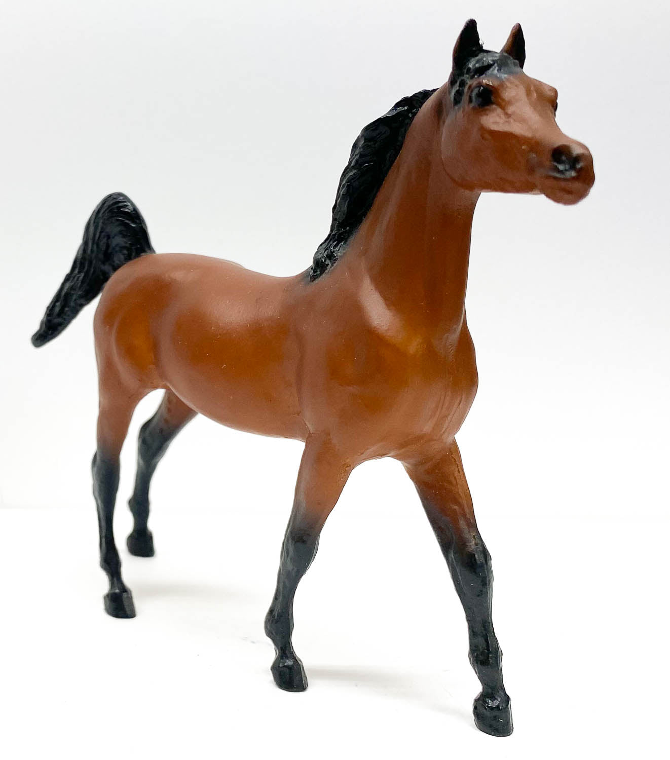 This fellow is from the first release of single Little Bits-sized models in 1984. This color was discontinued in 1988. He is done in solid bay with no white markings.