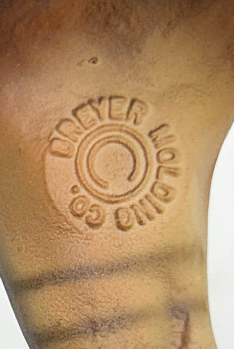 He is Near Mint with a couple of tiny dark hairline marks under his right barrel. He features a short Mary's Cross marking over his shoulders, neatly painted leg barring and bright whites. Like all on this mold, he's rather tippy, so we recommend Museum Putty or a Horse Safety Rack to keep him safely upright.