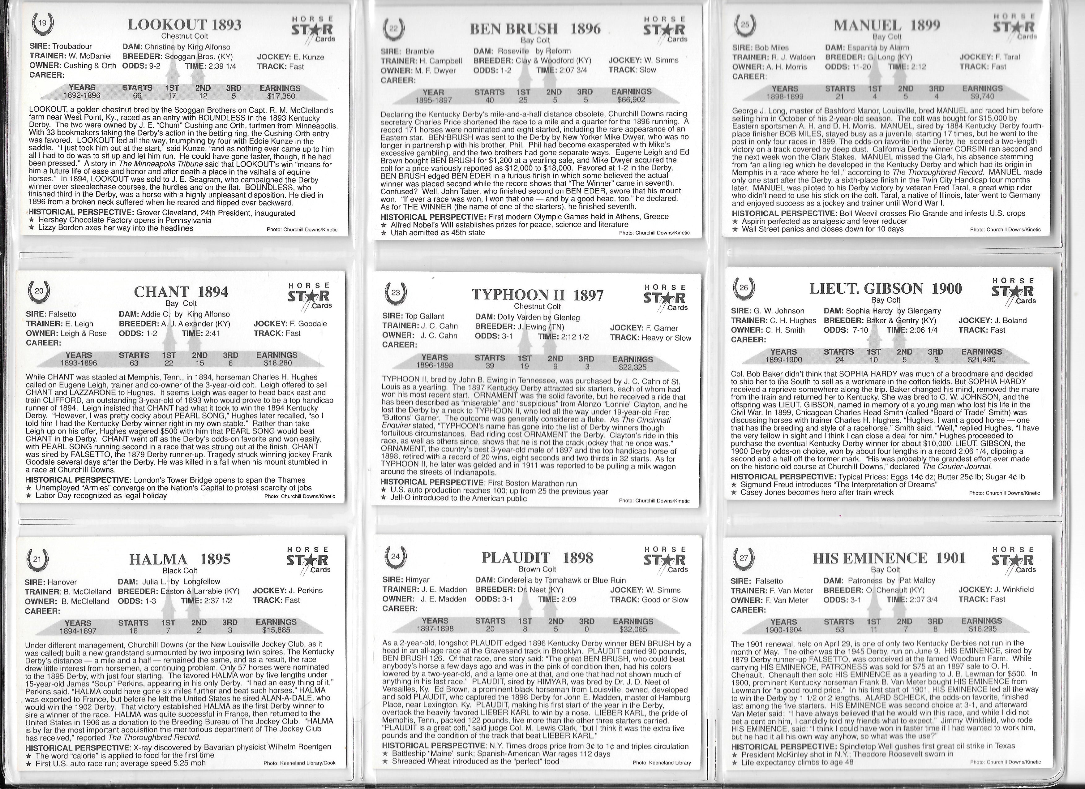 Kentucky Derby Trading Cards - Years 1893-1901