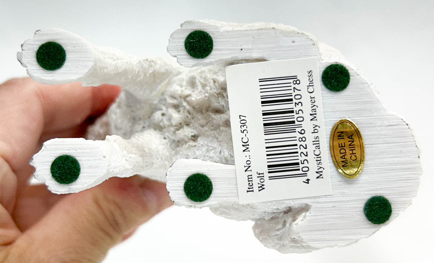 These are new inventory, straight from the manufacturer to our store.  This model is a "industrial resin" piece, which feels almost like heavy porcelain. Resins are solid, heavy and are breakable.  They are intended for adult collectors, not for play.  Each Mysticalls wolf is hand-painted, so there will be variations.
