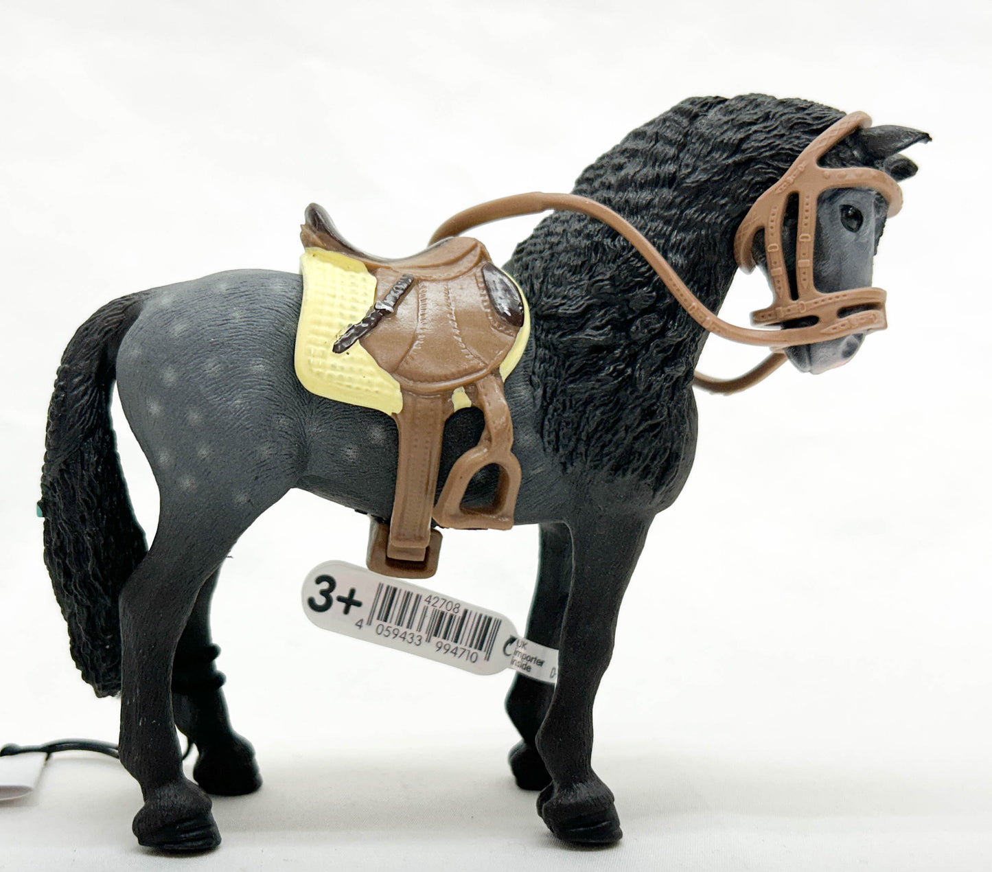 She joined the Schleich line in 2021, but has only been available with saddle and bridle since January, 2025.