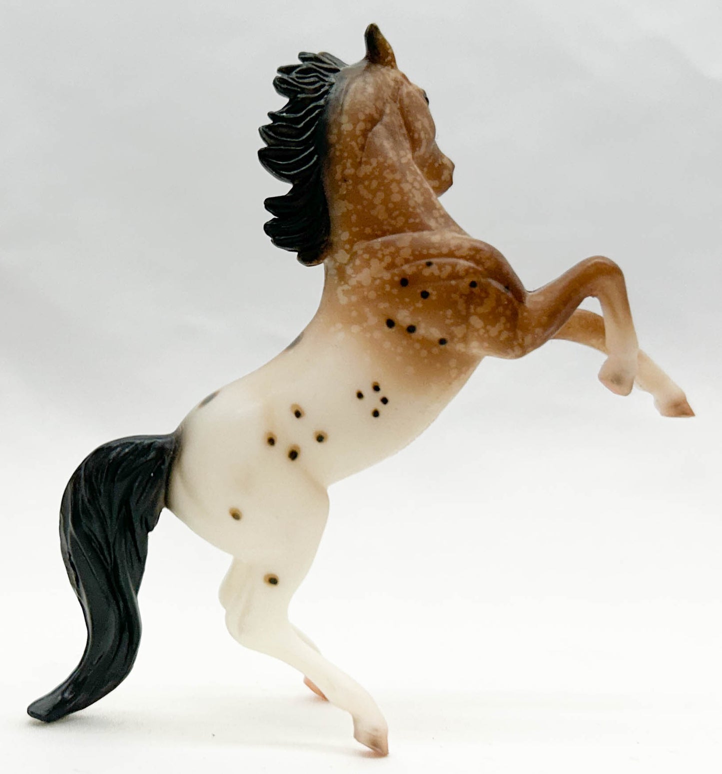 Eagle was the bonus Stablemate model for members of the 2012 Vintage Club. He wears a coat that's reminiscent of the early Appaloosa Performance Horse's roan Appaloosa coloring, which is one of the most famous coats in Breyer history. Only 500 were made of Eagle and people who have them almost never part with them - We are very lucky to be able to offer you this one!