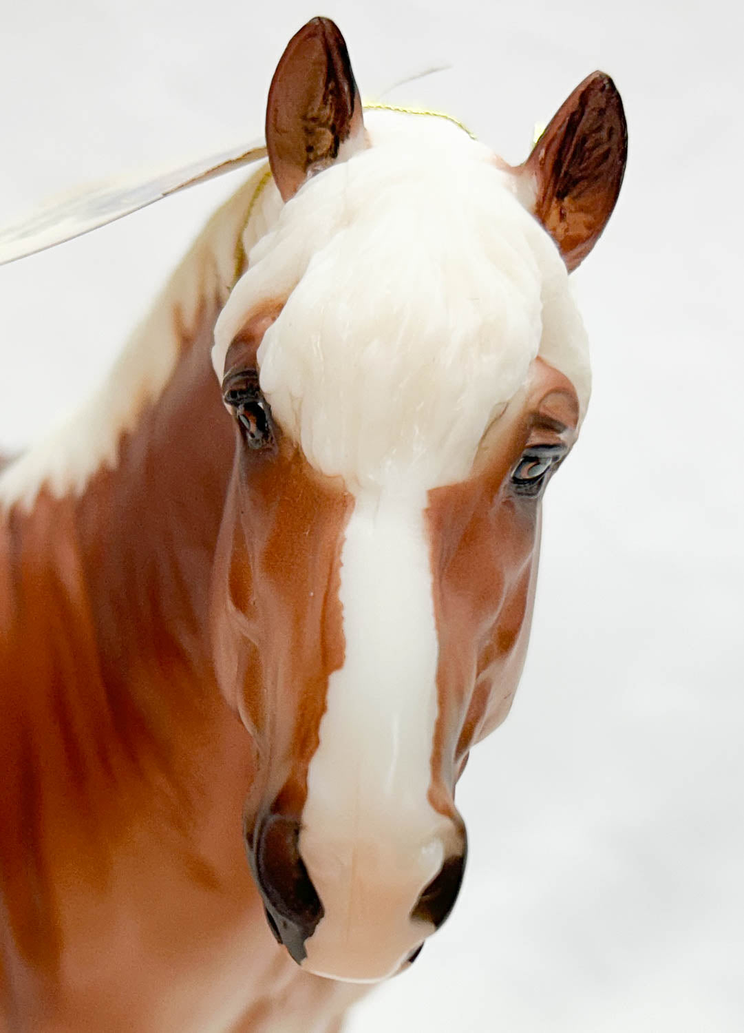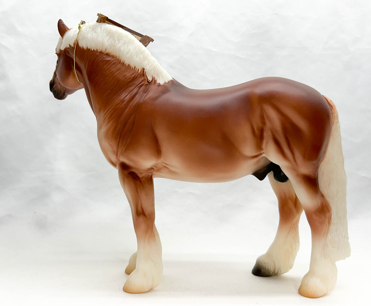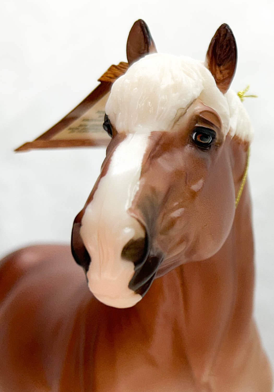 This gorgeous blonde or palomino Rhenish Drafter was a Special Run for Breyerfest 2022.  He was a split run, with 3000 made in matte and 2000 in glossy.