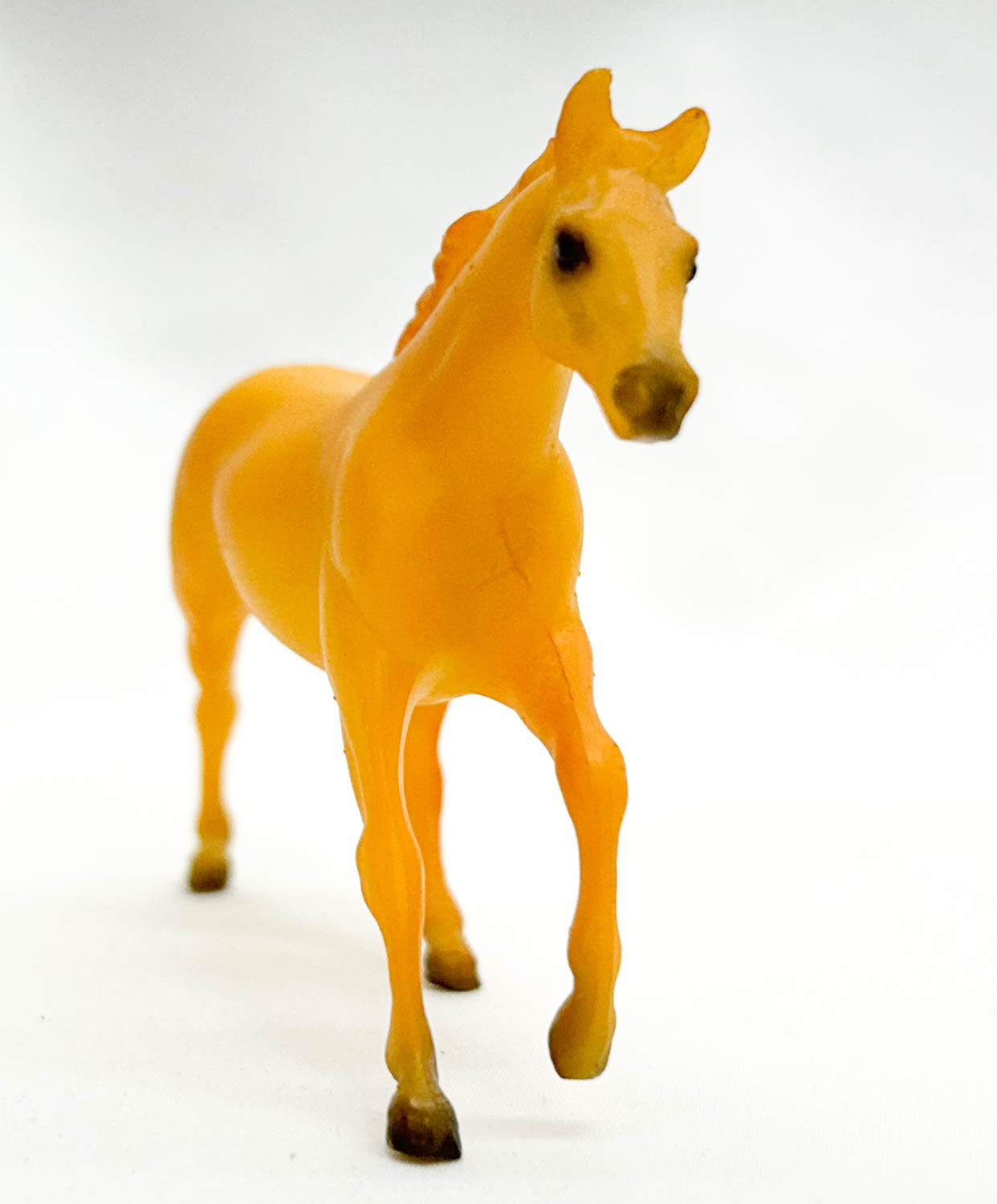 The G1 Love Seabiscuit mold looks beautiful as a rich palomino. He only wore this coat for the holidays in 1990 as part of Sears Stablemate Assortment II. His mane is nearly body color with lighter highlights, and he has a bit of muzzle shading.