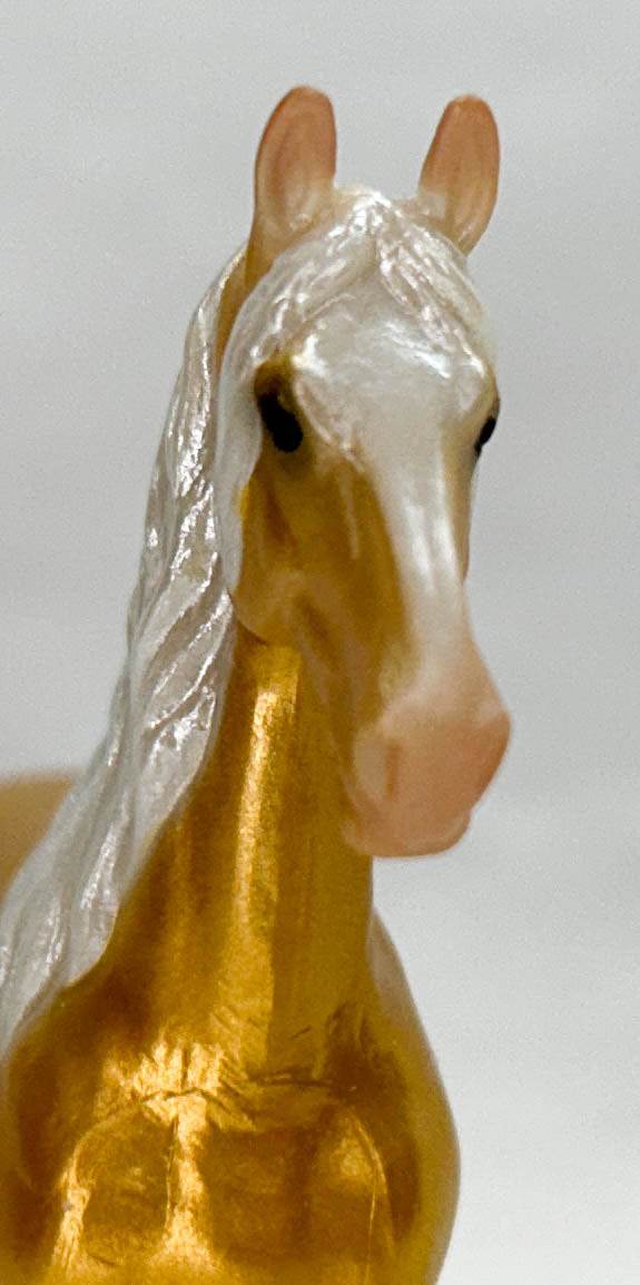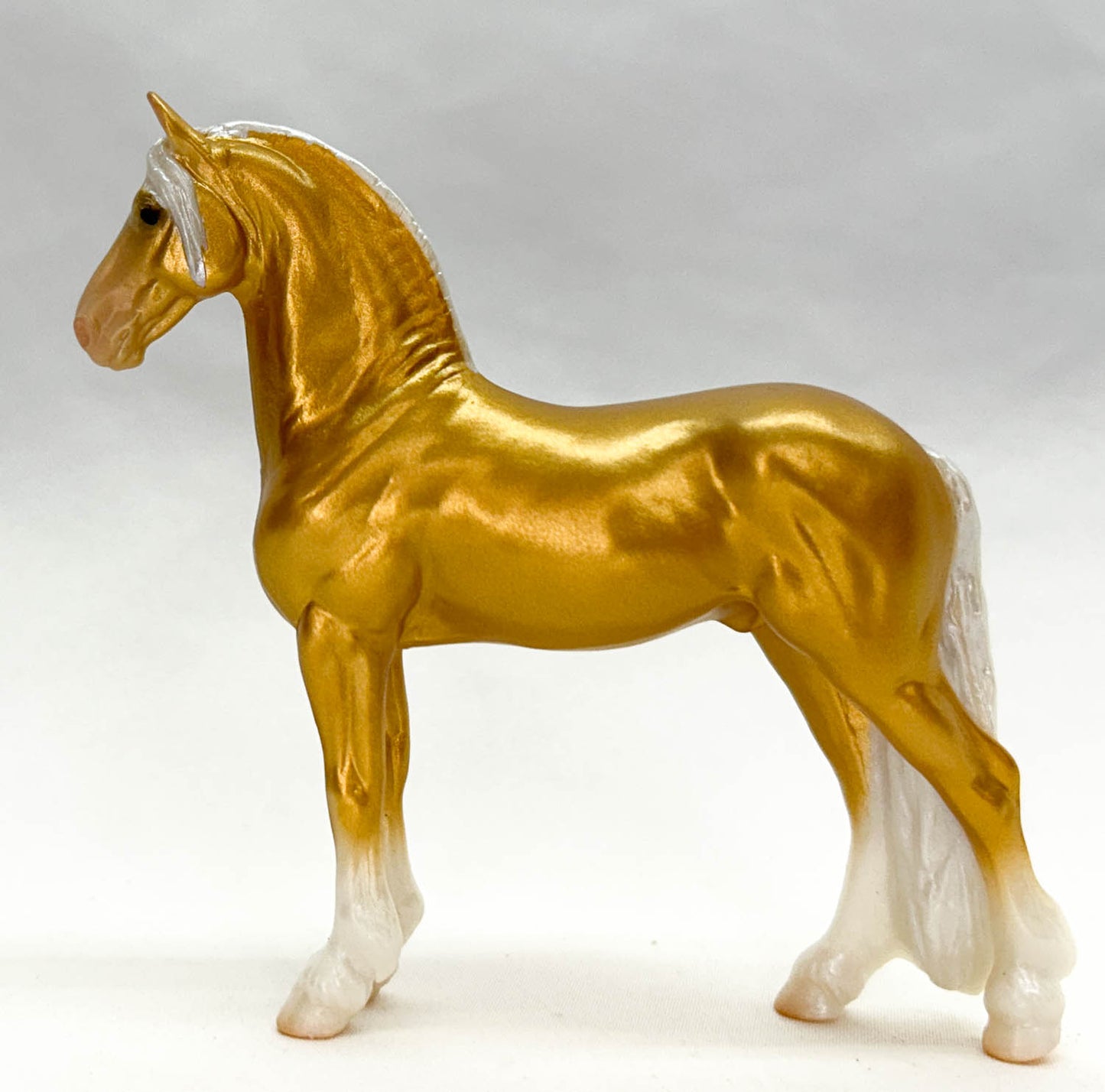 One of the "Four C's" of diamond grading, Carat indicates the gem's weight. Since it's also used to describe gold, it's fitting that that this gorgeous fellow is painted in Gold Charm. He was only available as part of Breyer's Brilliance Set for the 75th anniversary, but we are selling a small number of them individually!