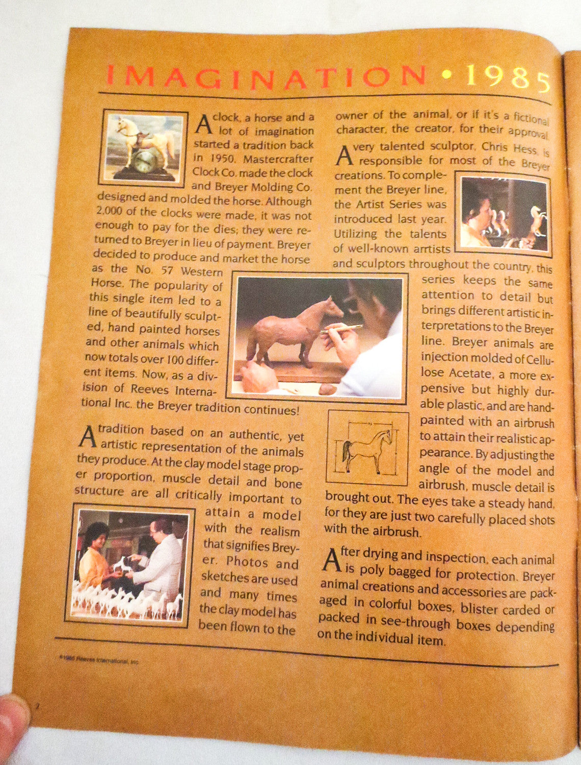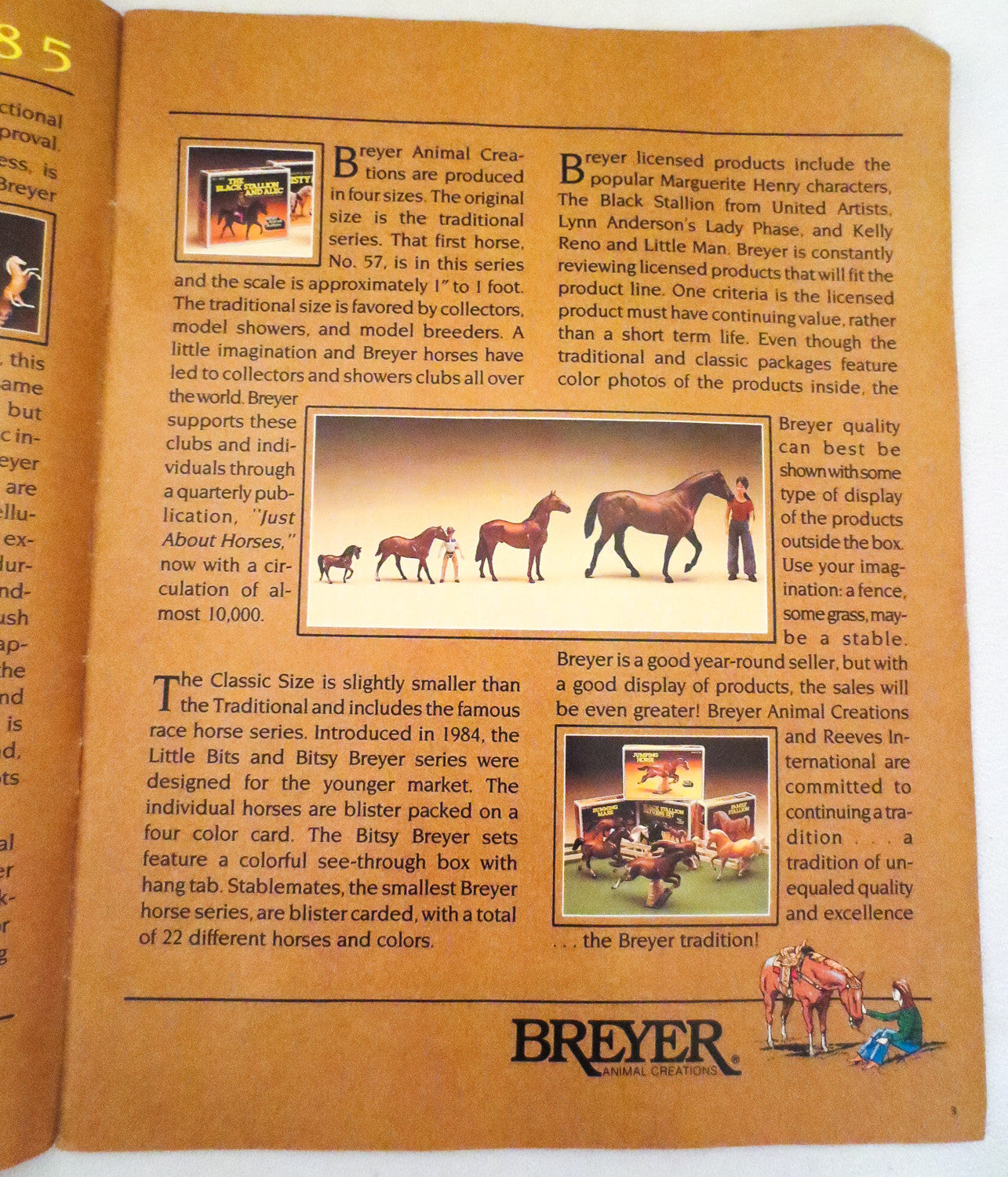 This is the large size catalog sent out to Breyer dealers for 1985, showing all of that year's models plus giving some background info about Breyer.