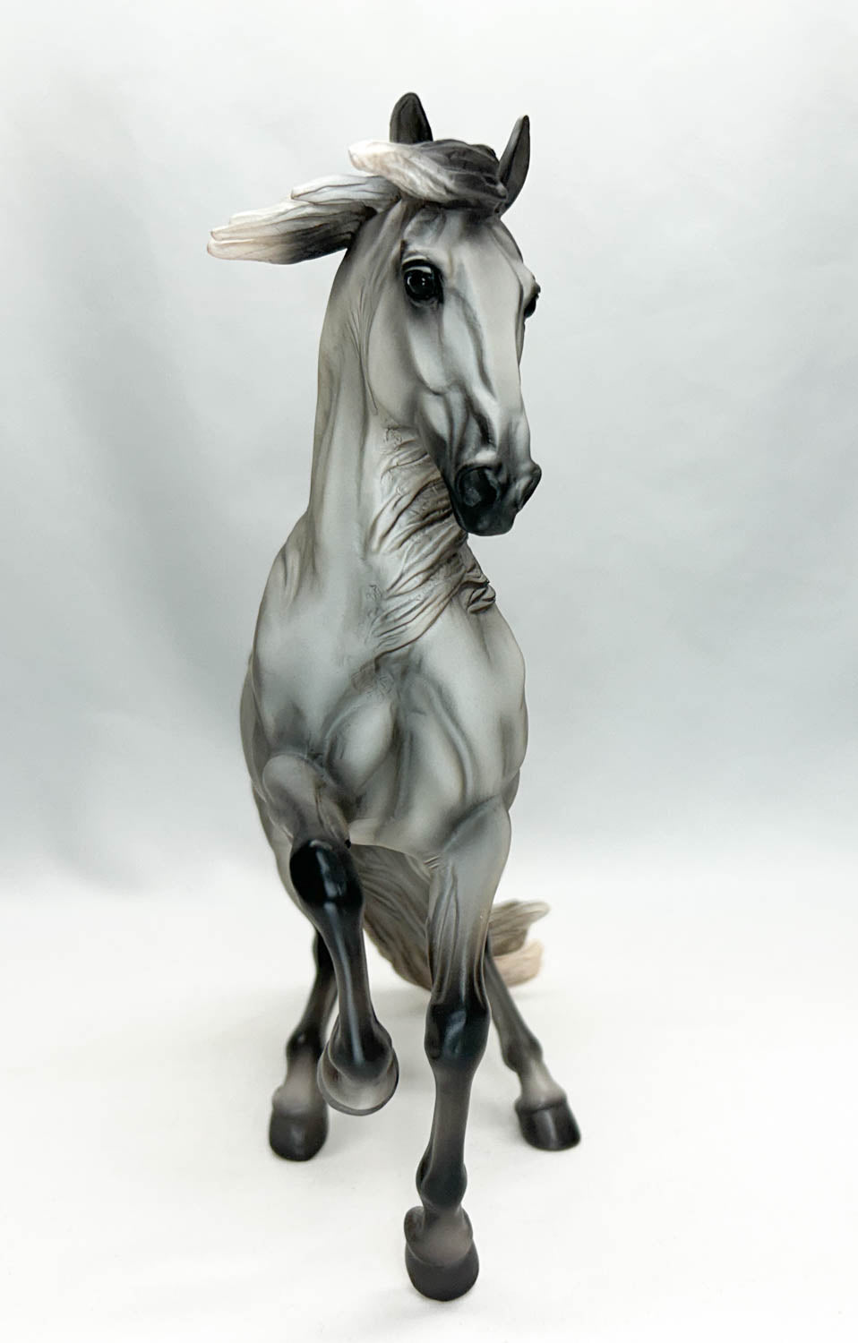 Breyer created the most sought-after model of them all when they released Alborozo as the Celebration Model for Breyerfest 2008... and then intentionally broke the mold so no more could be produced. (Of course, they warehoused a bunch of whiteware first, which have appeared occasionally as Breyerfest auction models.) This is the guy who started it all... The gorgeous dapple grey PRE stallion whose beauty is only matched by his amazing athleticism. His performance of Airs Above the Ground at Breyerfest is unmatched!