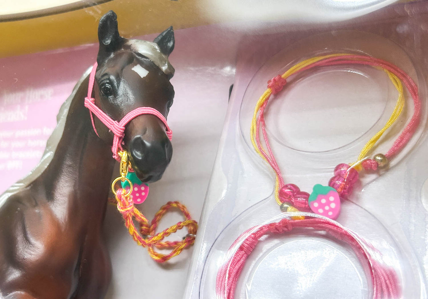 Get in on the Friendship Bracelet craze with this beautiful gift set! The elegant Arabian Mare wears a silver bay coat for this release, plus a pink halter and lead line. She brings you three different friendship bracelets to keep or share with friends! This pretty set joined the Breyer line in June, 2025.