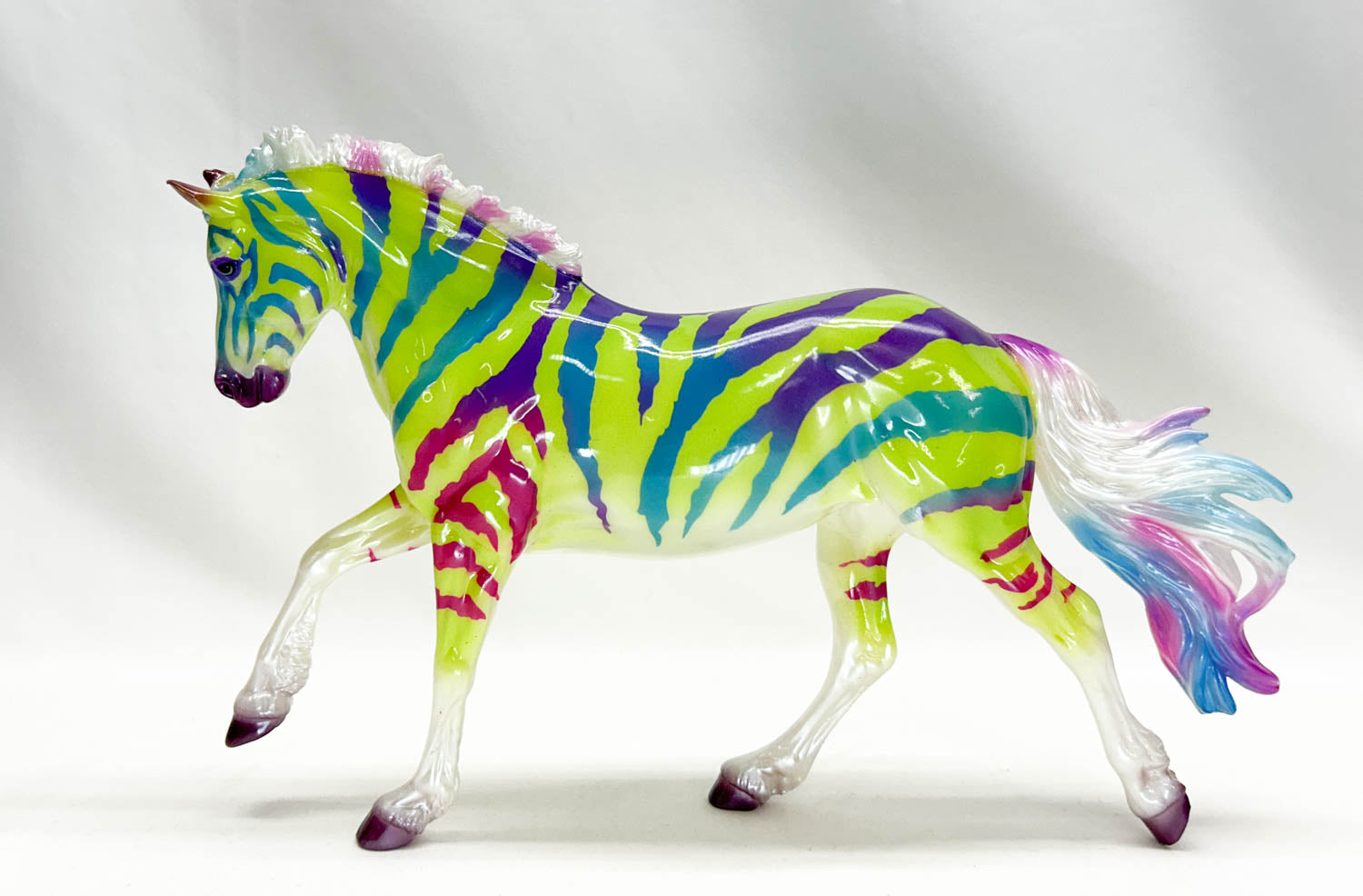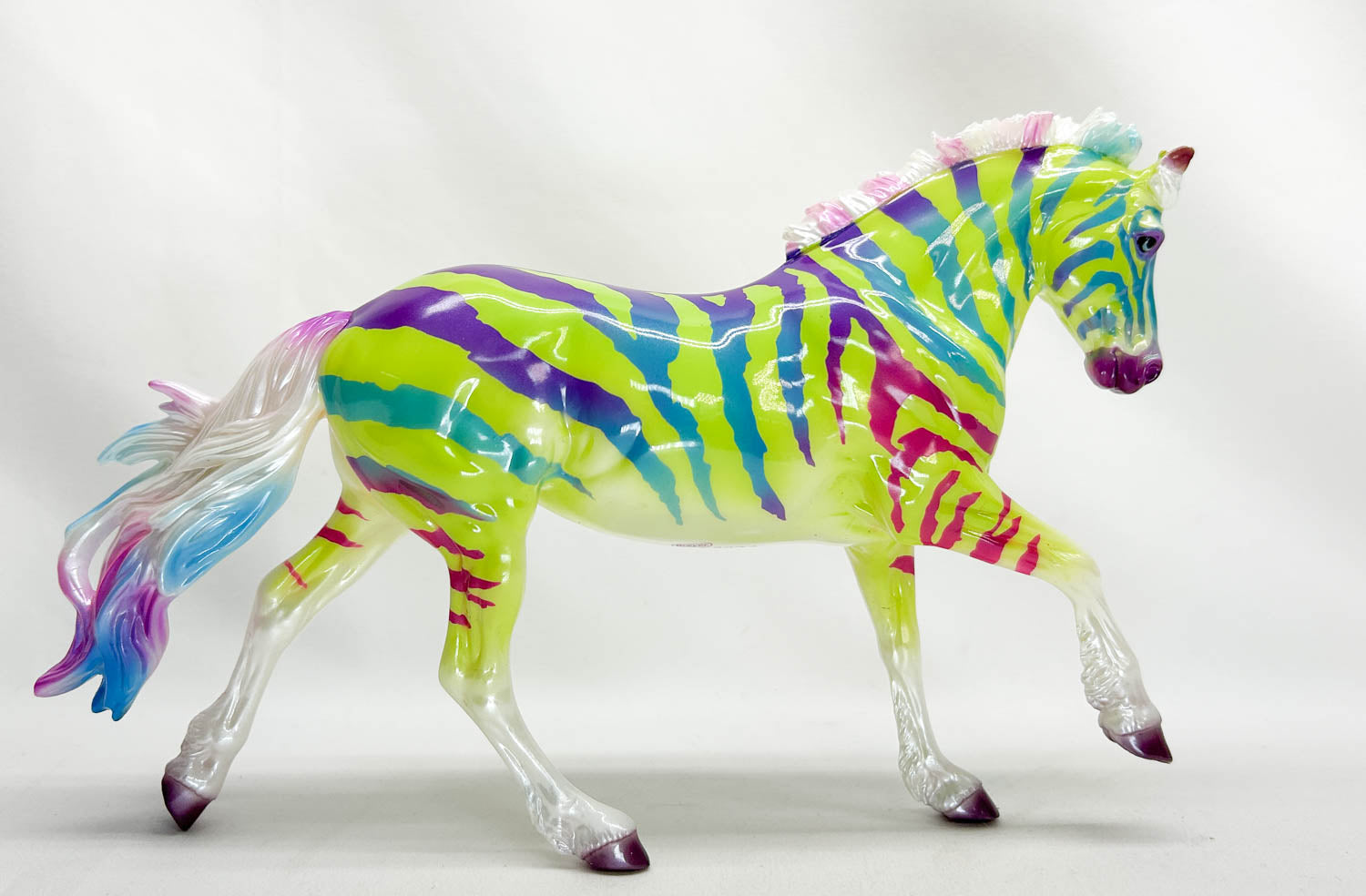 This pretty girl is Factory Mint with a pinpoint missed spot on her left withers and a few specks in her finish as always. She features vibrant coloring and bright, pearly whites.