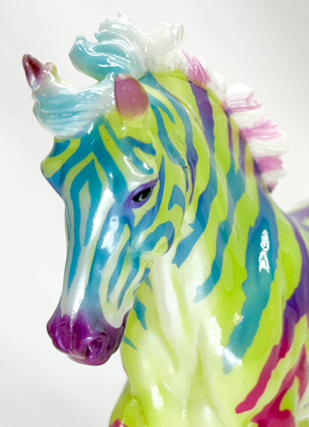 "Looking good is the best revenge" is a quote by author Linda Staci. Since this mare looks so good, she's better than revenge! This candy-striped Fjord was only available to ticket holders at BreyerFest 2024. Only 2,200 were made.