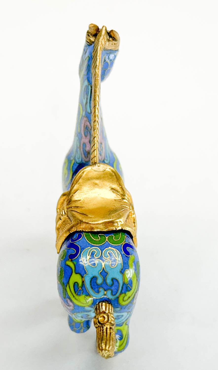 Chinese Cloisonne Horse, Walking Sky Blue with Gold Saddle