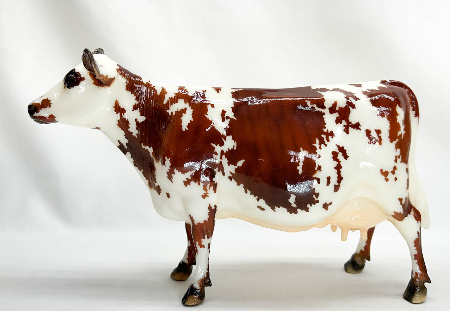 Elsa is a sweet brindle Normande Milking Shorthorn cow. She was a Web Special in 2022. She wears a brindled chestnut spotted coat with reverse star and snip, and a glossy finish. Only 1,000 were made.
