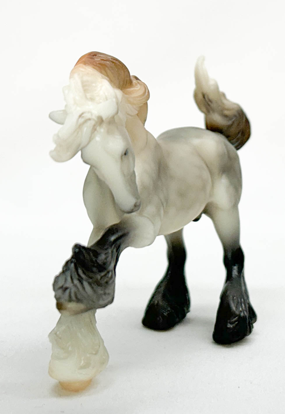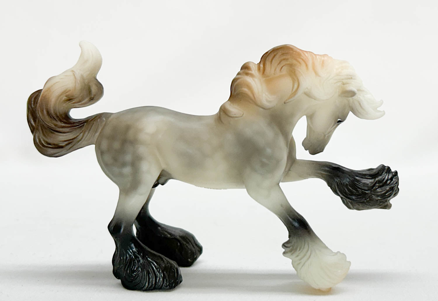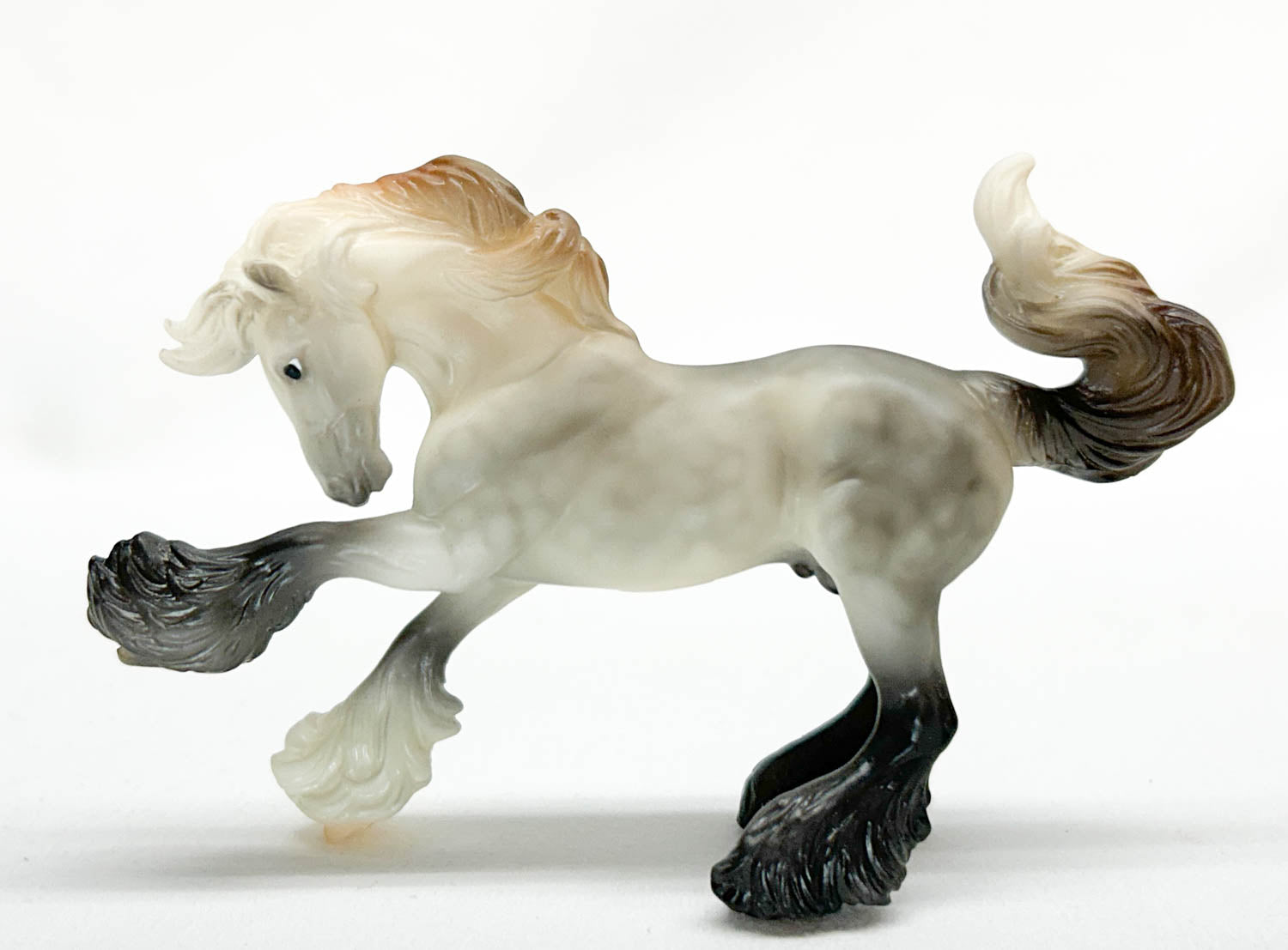 Sapporo is a city in Japan, known for its Snow Festival.  That makes it a fitting name for this snowy Vanner.  This light dappled rose grey was only available to members of the Stablemates Club in 2018.