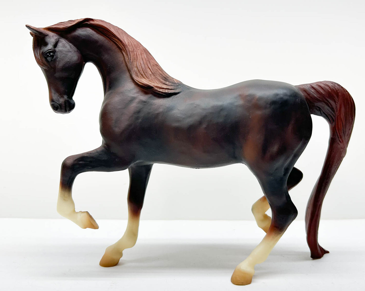 This lovely mare was only produced for six months, from Jan-June 1993 as part of the Proud Mother and Newborn Foal set. She wears a deep liver chestnut coat with a lighter mane and tail and four socks over buff feet.