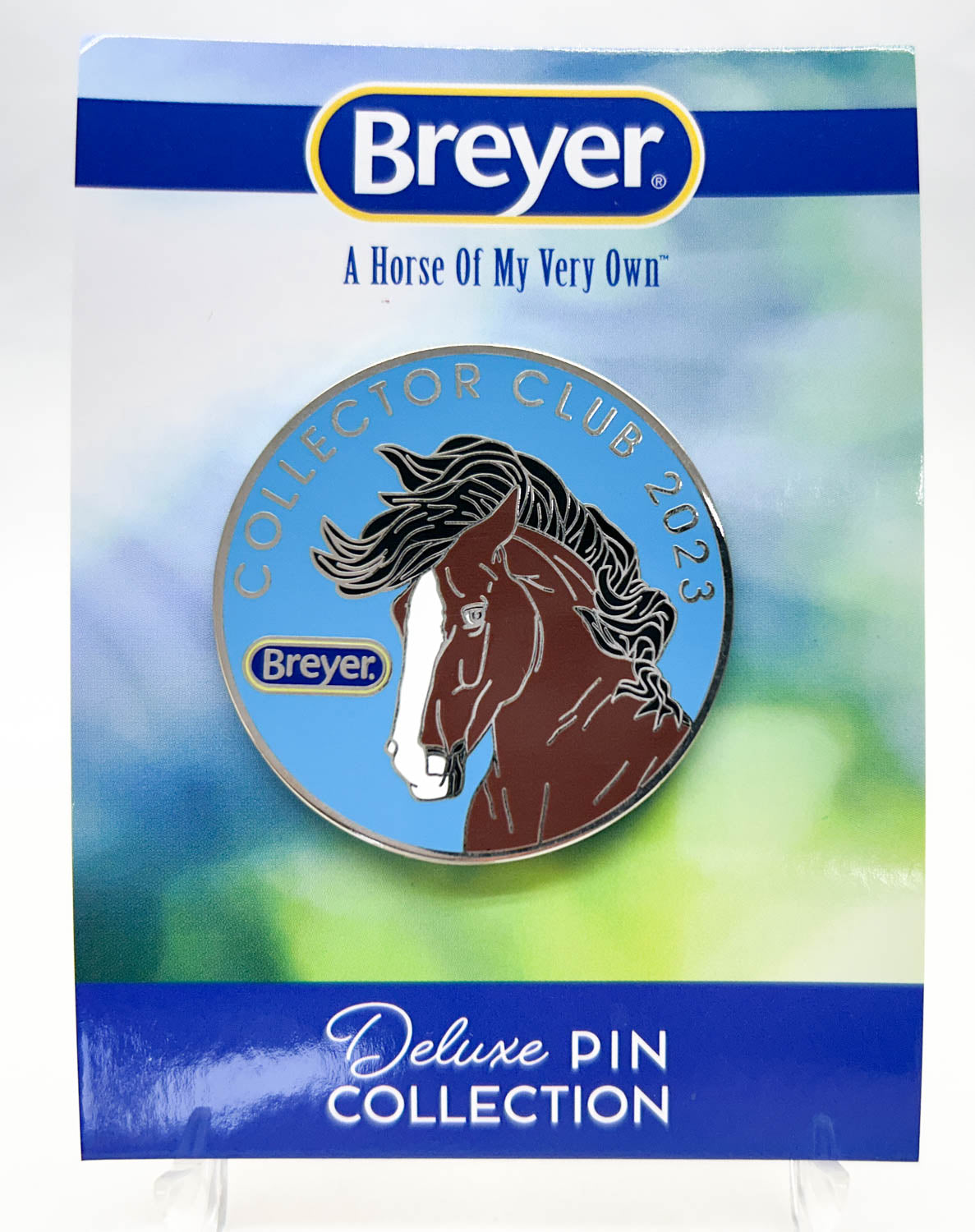 This beautiful lapel pin features a portrait of the Mustang Stallion on the front, along with the words Collector Club 2023, all in colorful, high quality enamel with pewter accents.