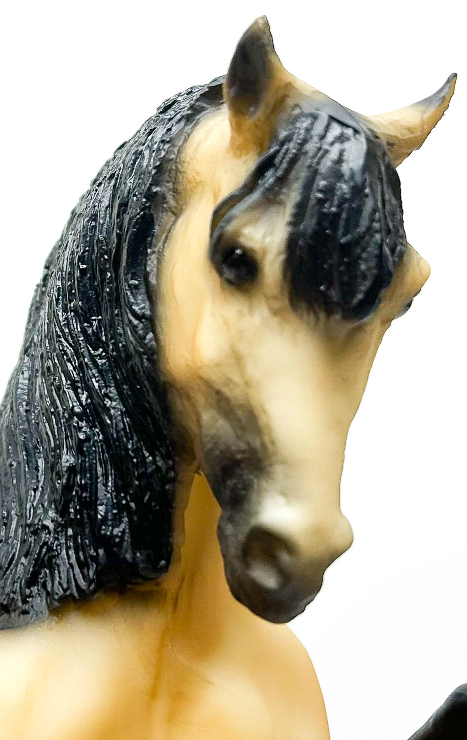 Breyer honored him with this special model which includes a coat with a pearly golden sheen. His portrait model was only available in 2001-2002.