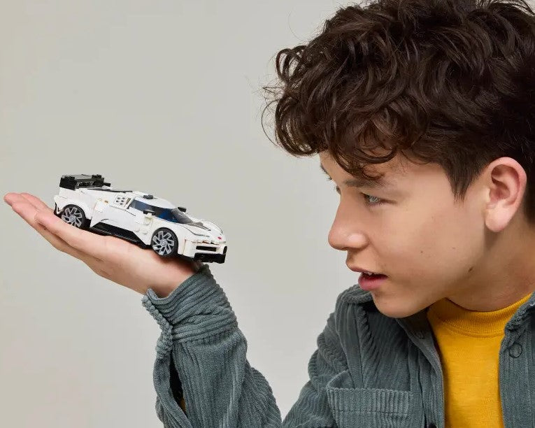 Kids aged 9 and up can collect, build, play with and display this LEGO® Speed Champions Bugatti Centodieci Hyper Sports Car (77240) model. Designed to pay homage to the legendary Bugatti EB 110 model, this impressive toy for boys and girls features many famous design details from the real-life vehicle. The Bugatti LEGO® car model includes the Centodieci hyper sports car’s 5 round air-intake features on the side, its unique rims, headlights, horseshoe radiator grille, overhanging rear wing and 4 rear tailpipes. The LEGO car set also comes with a Bugatti driver minifigure for kids to place behind the wheel and role-play action. LEGO Speed Champions building sets let kids and passionate car fans build replica versions of some of the world’s most iconic vehicles. Each car playset can be created using the LEGO Builder app, which guides you and your kid on an easy and intuitive digital building adventure.