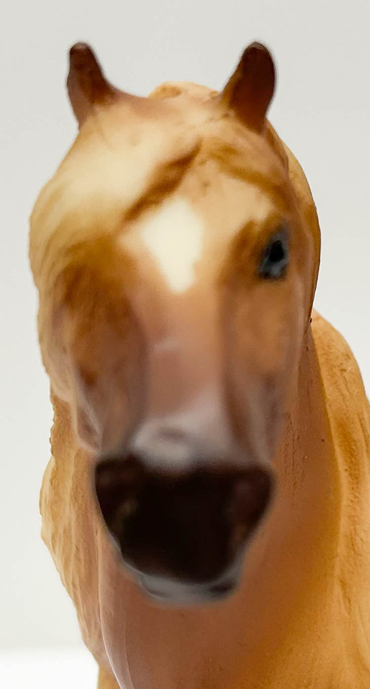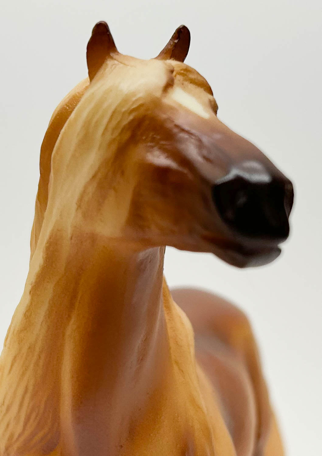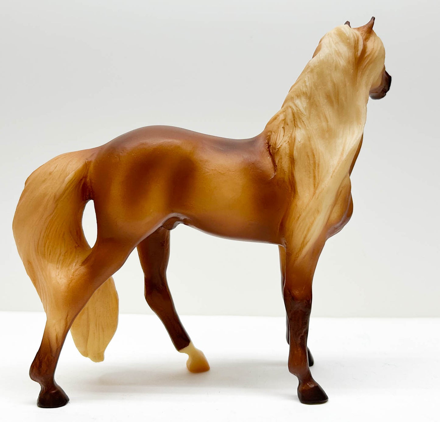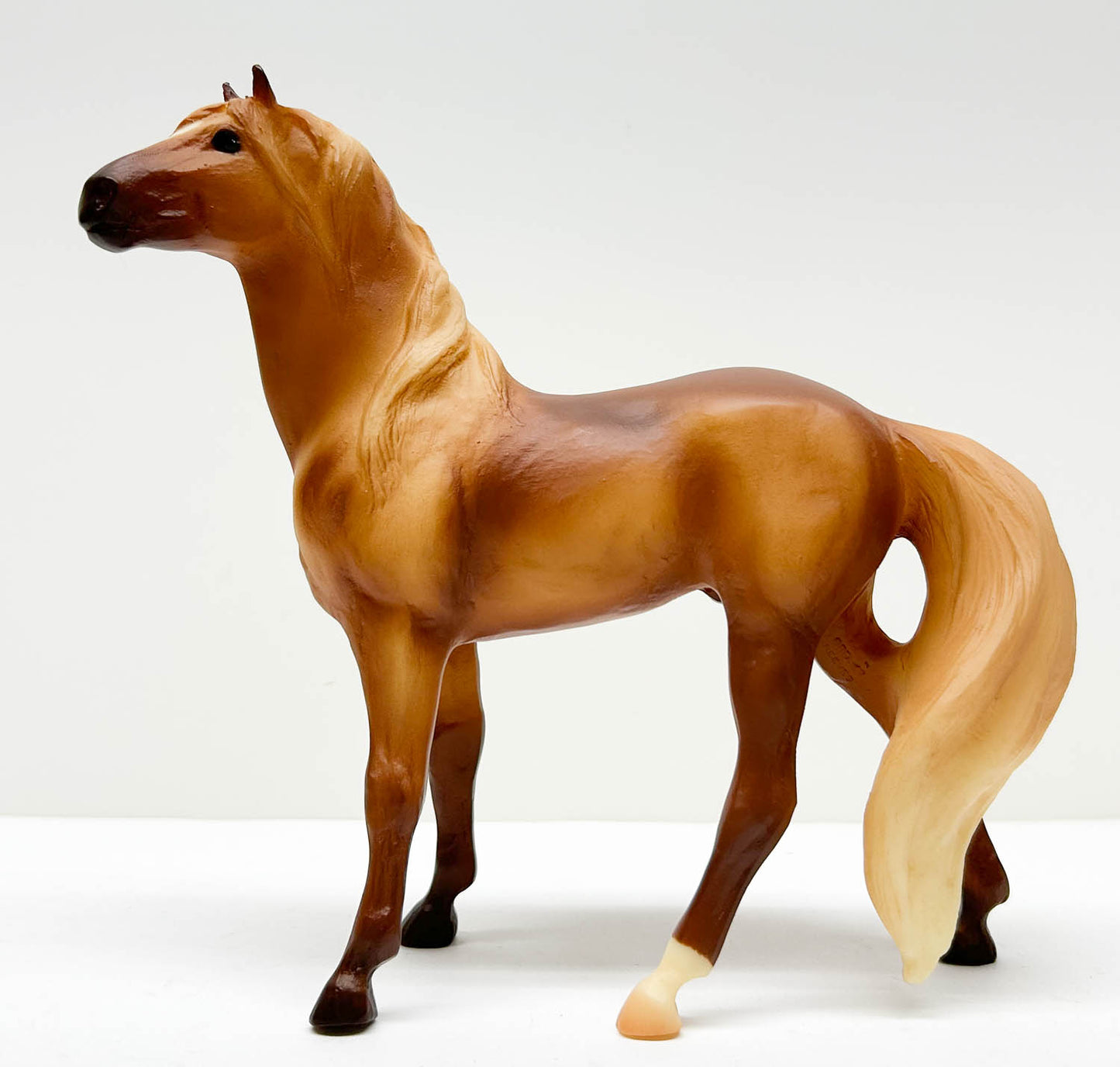Alano & Mateo (front of box just says Smutty Palomino Stallion & Smokey Black Foal) were a Special Run through Walmart in 2002.  Alano wears a light chestnut coat with a flaxen mane and tail, left hind sock and a star.  While the set continued into a second year in 2003, Mesteno was replaced with the Duchess model the second year, so he's a single-year release.