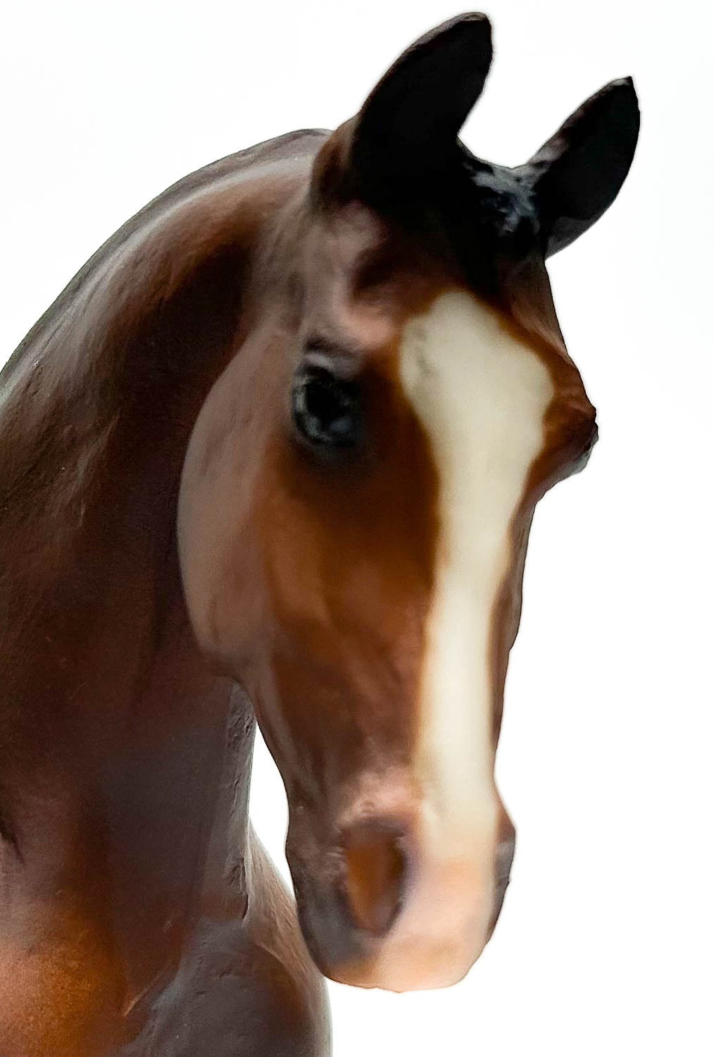 This beauty is Dover, a portrait of the famous Trakehner.  She wears Dover's dark bay coat, blaze and three socks.  She was only produced in 1996-1997.