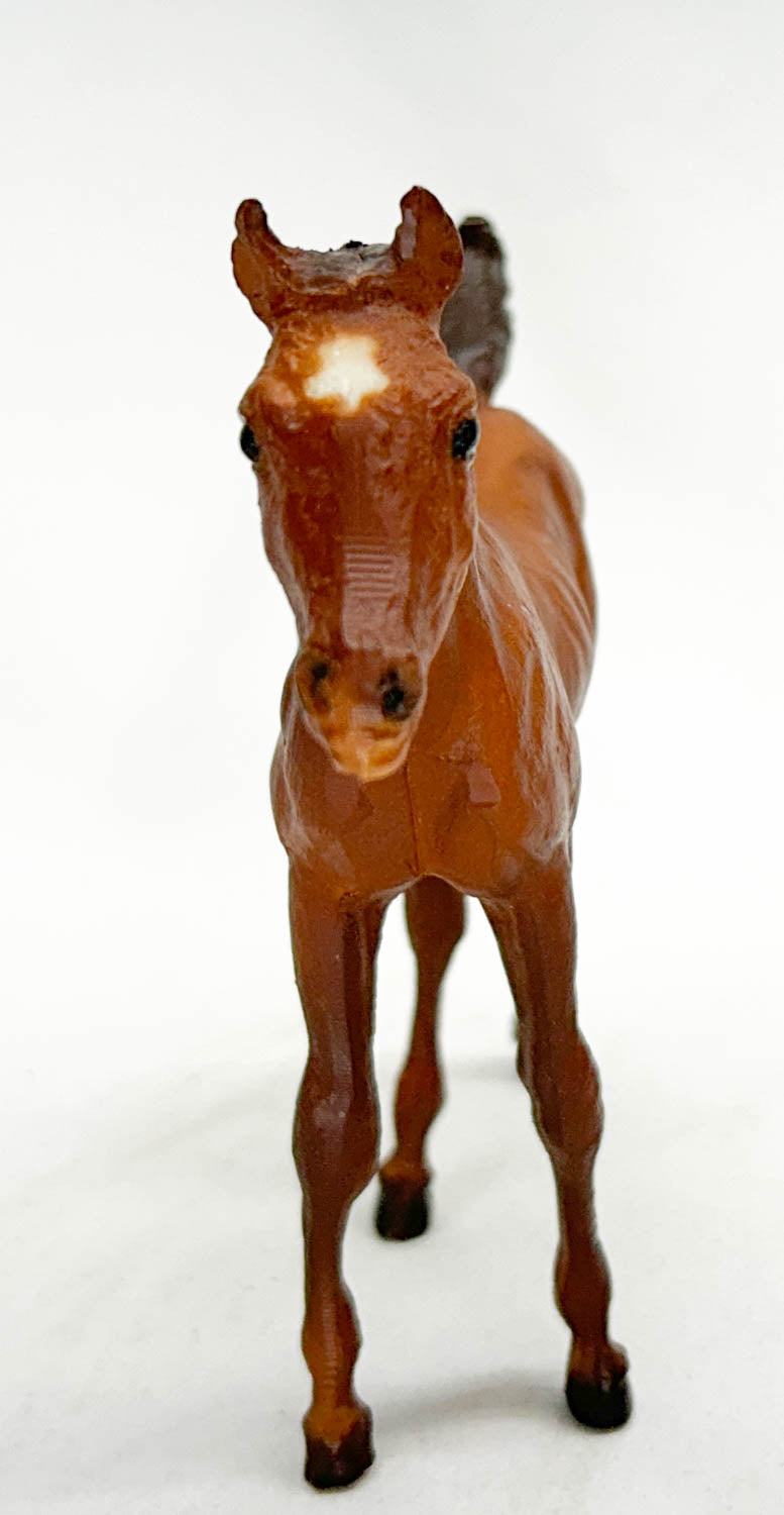 Marguerite Henry's Sea Star is the orphan foal in her third book featuring the wild ponies of Assateague Island.  Little Sea Star is a chestnut with solid legs and a star-shaped star.  She was produced only from 1980 - 1987.