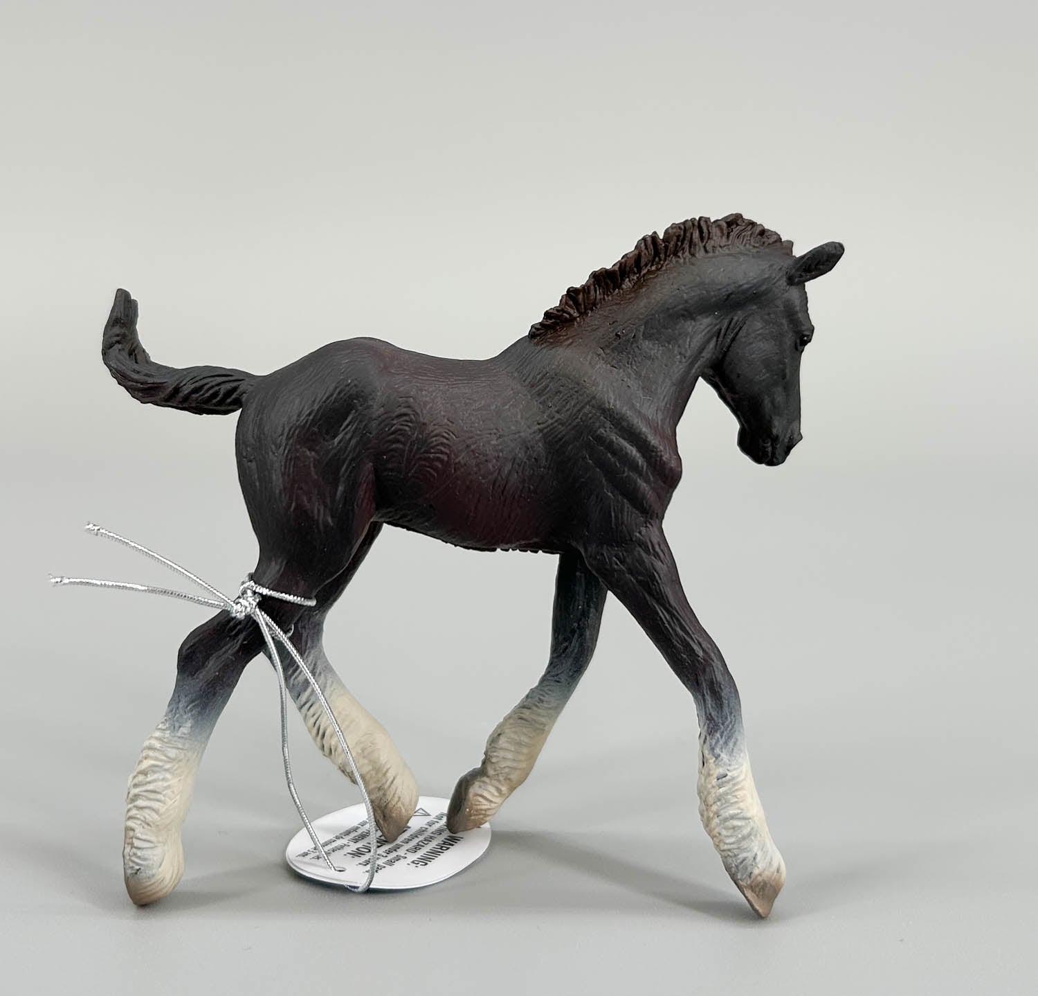 This adorable Shire foal is as suitable for halter class as he is for playing in the field. Whatever he's up to, he's enjoying himself thoroughly! He wears four high stockings and a stripe, along with some brown highlighting of the baby fuzz on his barrel. She joined the CollectA line in 2012.