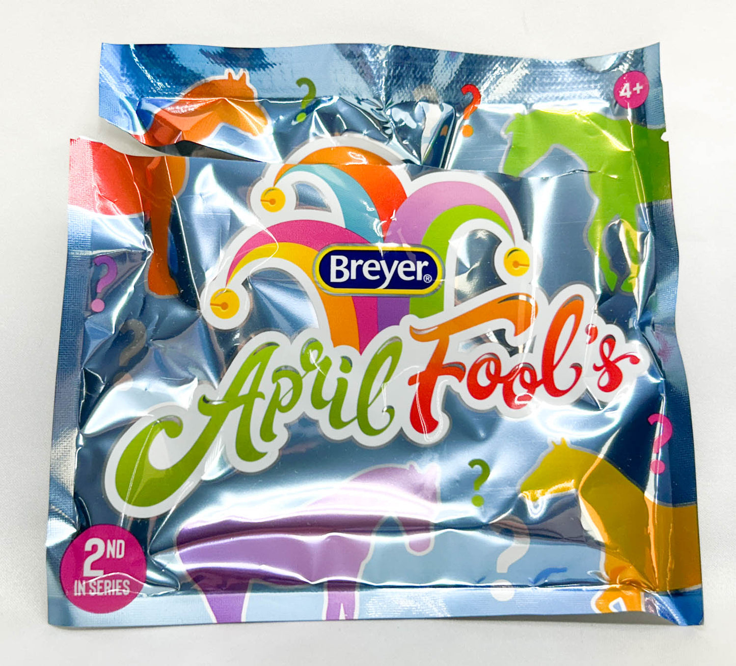 Breyer surprised everyone with a round of blind bags on April Fool's Day, 2025. Considered Series 2, it included this pretty black pinto on the Mini Smart Chic mold, wearing a pattern and paint style that emulates the 1981 black pinto Stock Horse Stallion release.