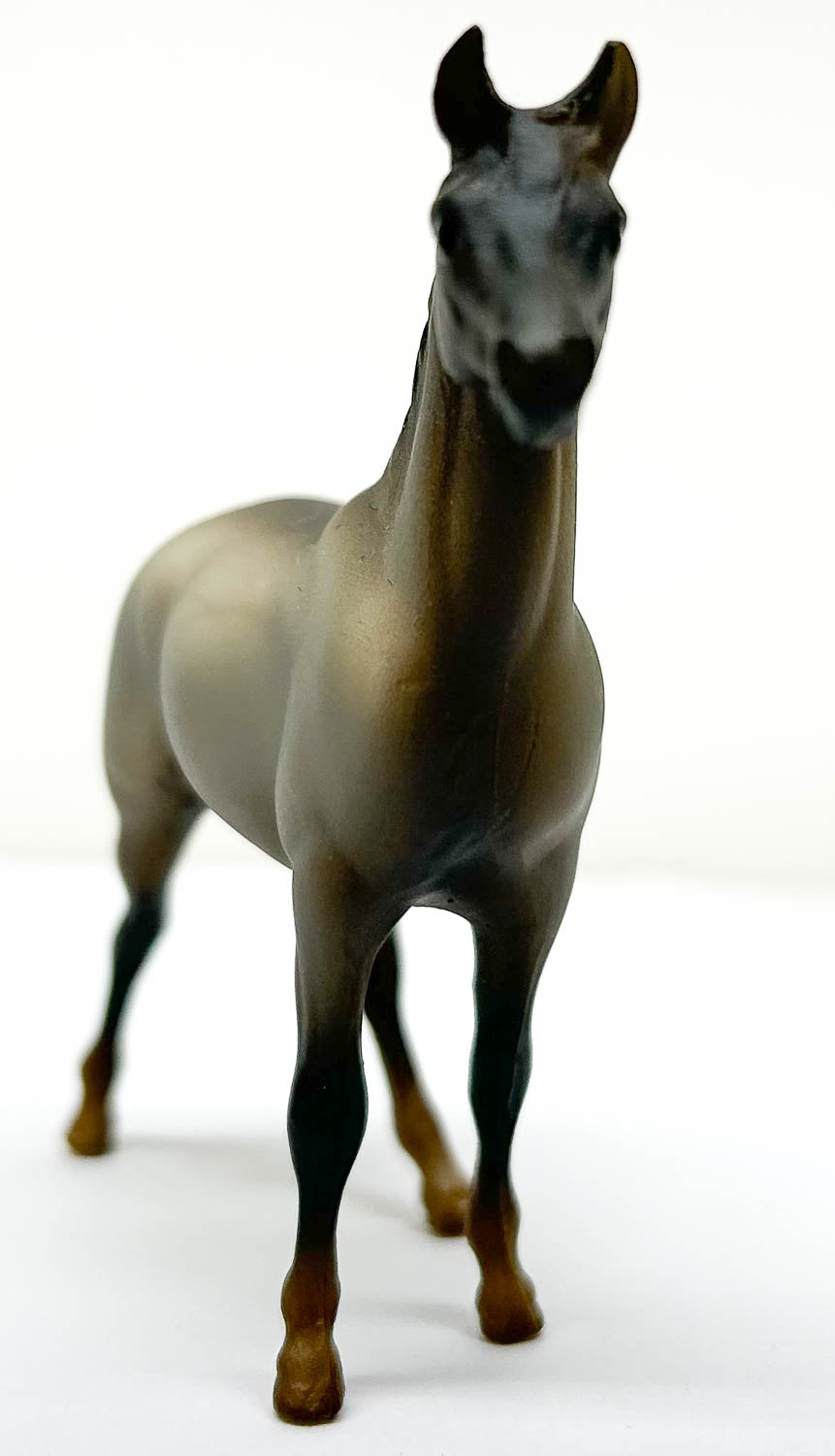 He is Near Mint with a few pinpoint spots that missed getting painted (or pinpoint rubs).  He features an airbrushed dorsal stripe, dark face, and chestnut lower legs, a hallmark of this release.  He even still wears his gold foil "Made in China" sticker.