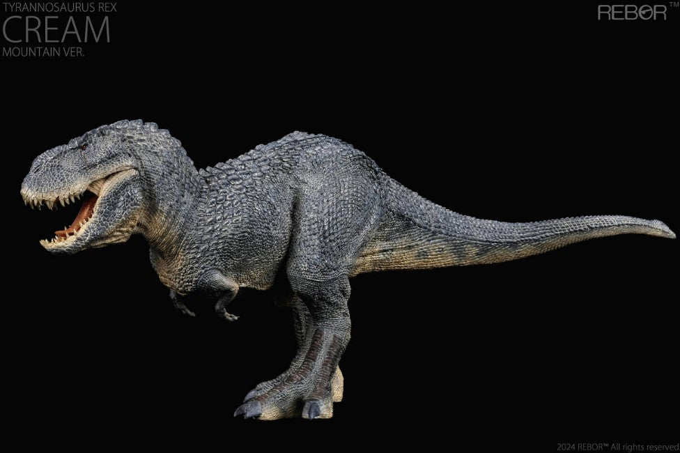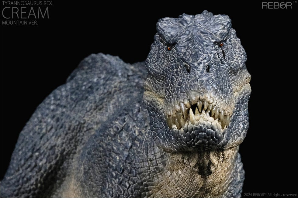 All of REBOR'S T-Rexes are named for rock bands, and Cream is no exception.  This fierce fellow has scales colored to blend in with the rocky mountain environment he calls home.  And the teeth!  He features an articulated jaw to show them off the way you choose.   He is an approximately 1:35 scale version, with incredible texturing and paintwork.