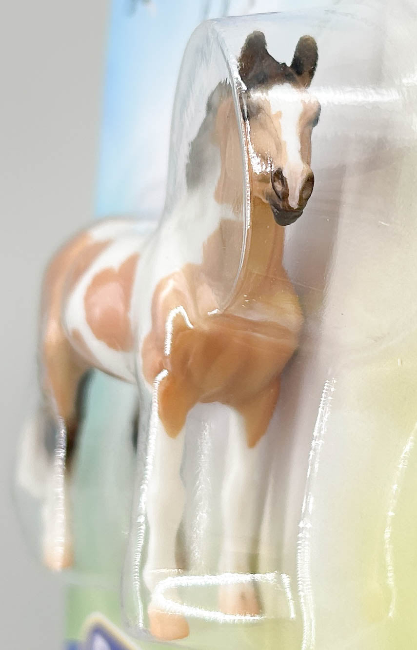 What a pretty coat she has! The Warmblood Mare sports a buckskin tobiano coat with two-tone mane and tail for this release. She joined the Breyer line in January, 2026, packaged in a bubble card.