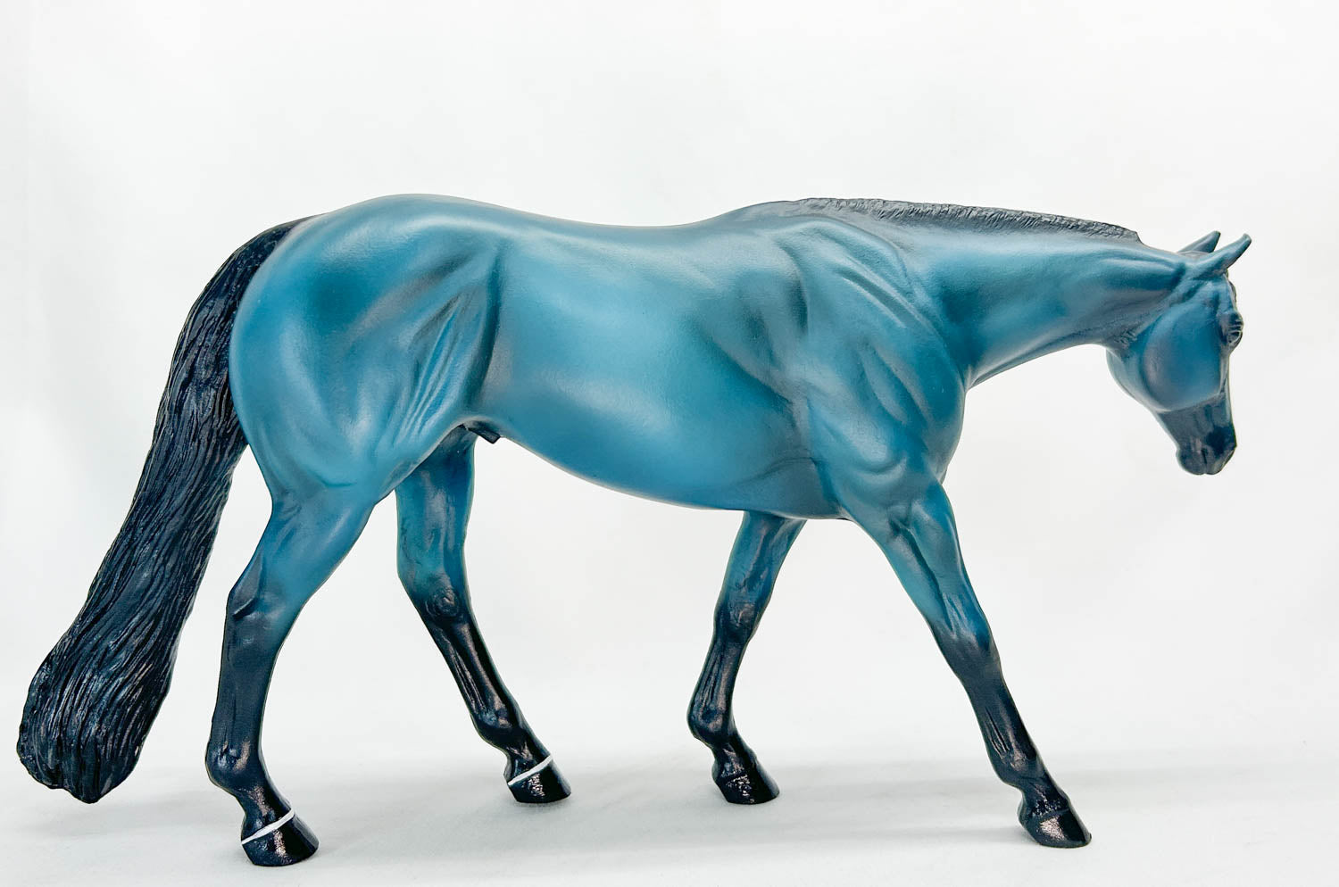 Peter Stone released this lovely turquoise Western Pleasure Horse as a Limited Edition in the first six months of 1999.  She wears a rich turquoise coat with sooty shading and no white.